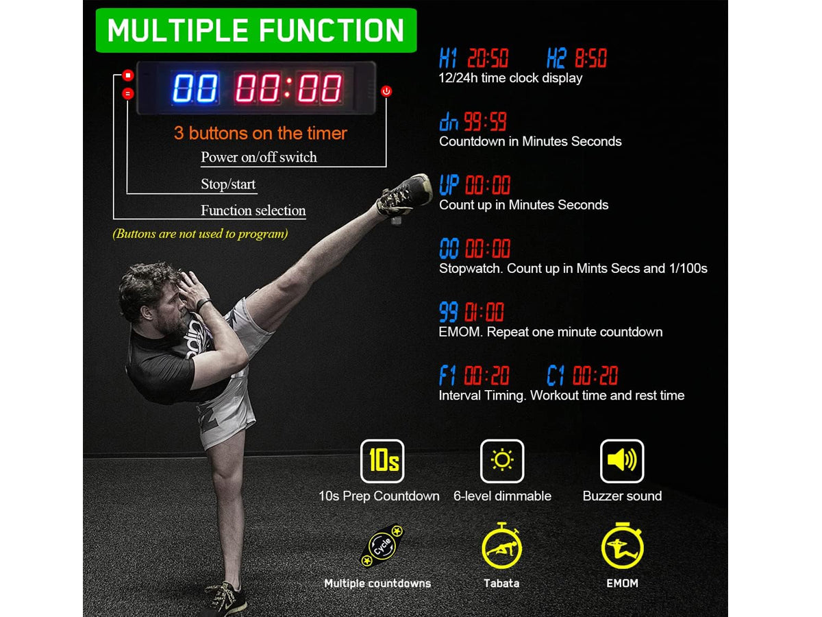 Introducing the HIIT Interval Training Gym Timer - your ultimate workout companion. This feature-packed Digital Clock Timer for Home Gym is designed for fitness enthusiasts who demand precision in their training. With countdown timers, EMOM programming, customizable intervals, HIIT sessions, and quick access to programs like TABATA and FGB, this Home Gym Equipment Fitness Timer ensures your workouts are perfectly timed.