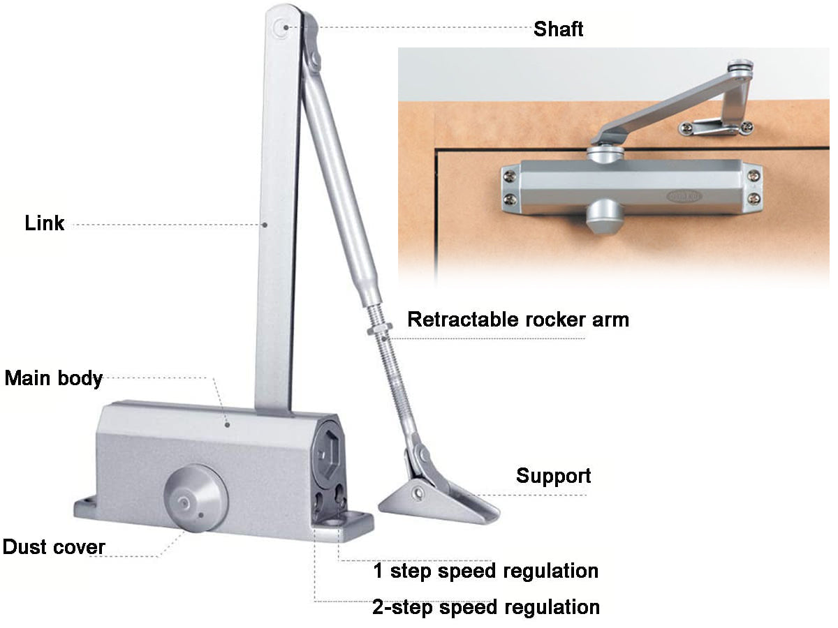 This door closer is suitable for left and right-hand doors. wooden doors, metal doors, residential and commercial doors, exterior/inner door closers, fire doors, etc.