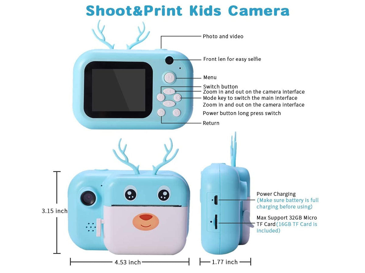 Equipped with dual cameras, this Digital Kids Camera is suitable for taking photos, recording 1080P FHD videos with sound and printing photos instantly. This Kids Camera has 24MP rear and selfie camera that allows children to take pictures and prints in seconds. This digital Kids Camera comes with a built-in long standing battery that can last up to 3 hours in taking photos and videos.