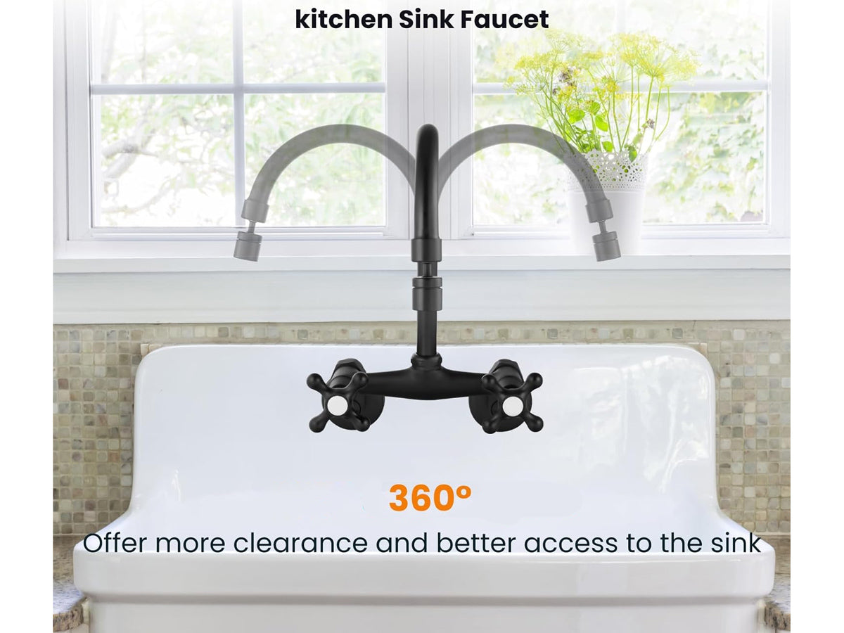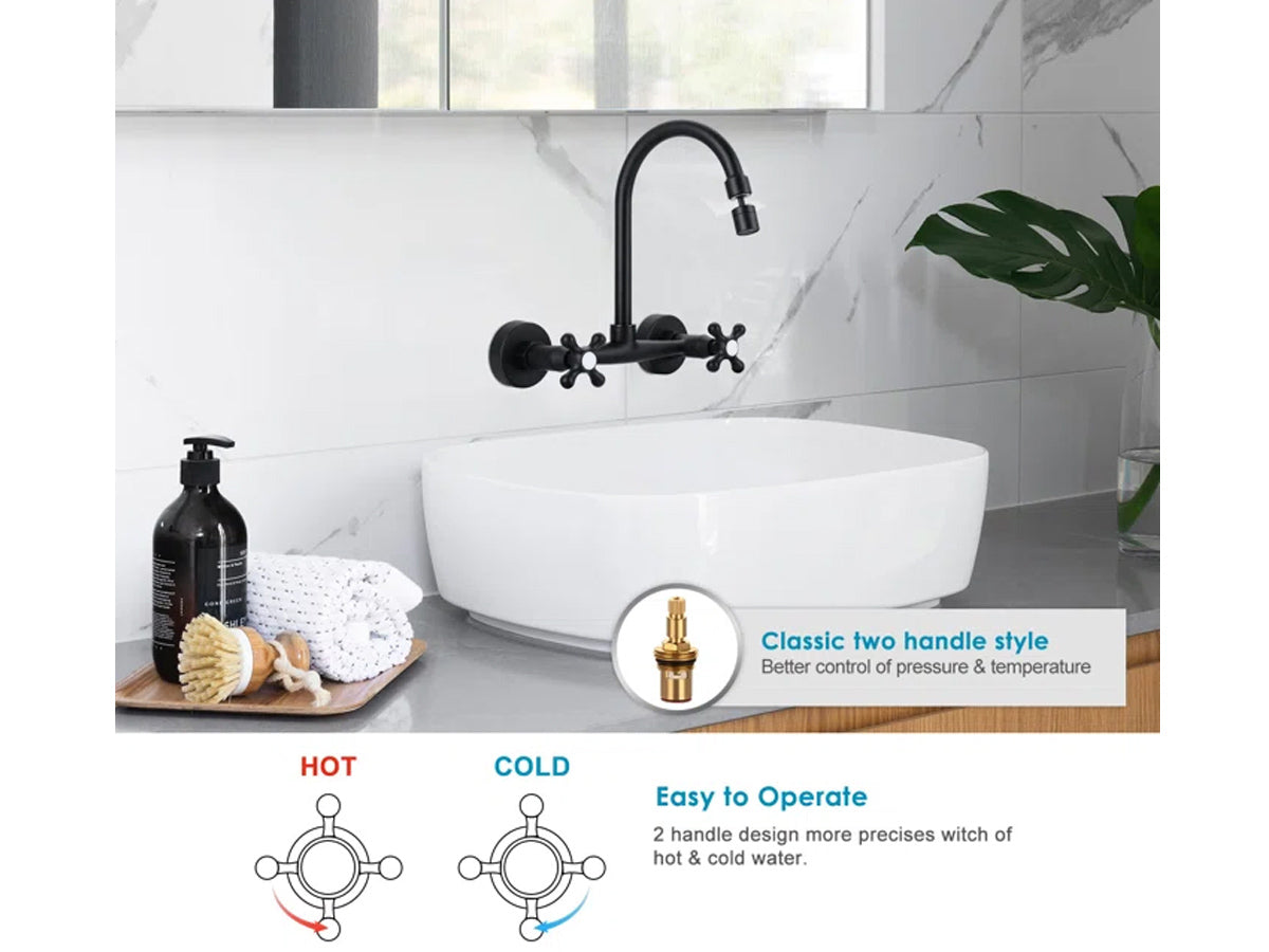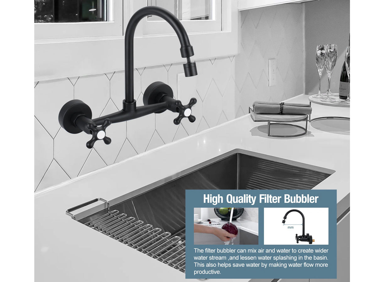 Elevate your kitchen experience with this Kitchen Mixer Tap. Crafted from solid brass, it offers superior corrosion resistance and durability. The double cross lever handles provide precise control over hot and cold water, while the 360-degree swivel spout and powerful spray make everyday tasks effortless. Easy to install and featuring a splash-free aerated stream, this Kitchen Tap Sink Mixer is perfect for residential kitchens, offering convenience and reliability for all your cleaning and cooking needs.
