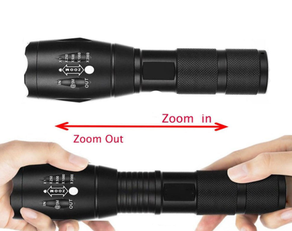 Experience reliable illumination with this high-quality LED flashlight. Built for durability, it features an ultra-bright LED bulb, five lighting modes, and a zoom function. Whether you're camping, hiking, or preparing for emergencies, this flashlight is the perfect companion. Its waterproof design ensures performance in various conditions, and the rugged aluminium alloy body offers superior shock resistance.