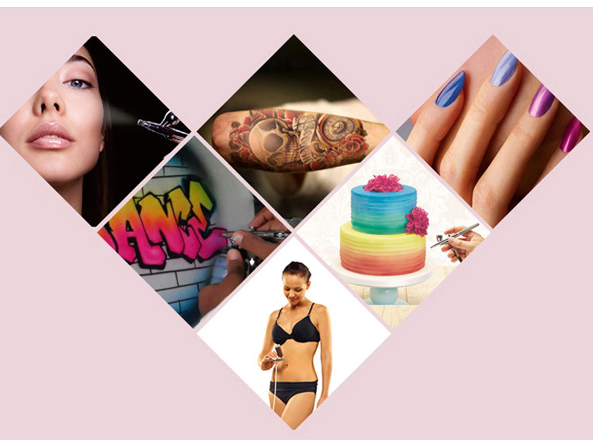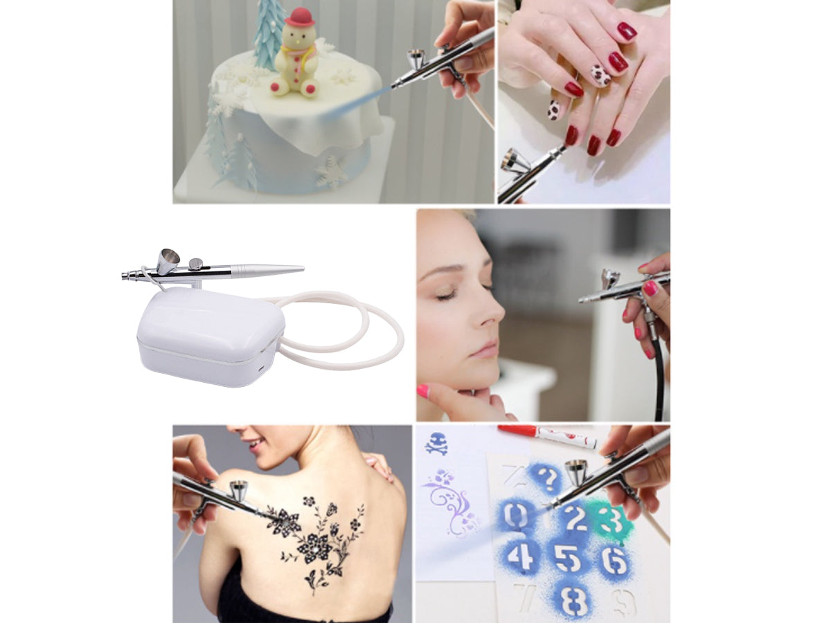 Airbrush Compressor is ideal for model making, cake decorations, drawing the outline of camouflage, tattoos nail art, fine art, nail art, temporary tattoos, cake decorating, hobbies, etc.