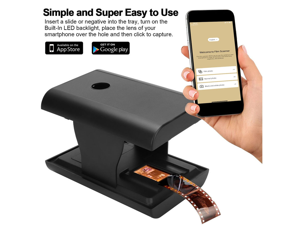 This is the perfect App supported Negative Film Slide Scanner, the perfect solution for converting your old films and slides to digital JPEG format using your smartphone. Our Mobile Film Scanner comes with an easy-to-use app that allows you to capture, crop, rotate, and filter your photos, ensuring optimal image quality.