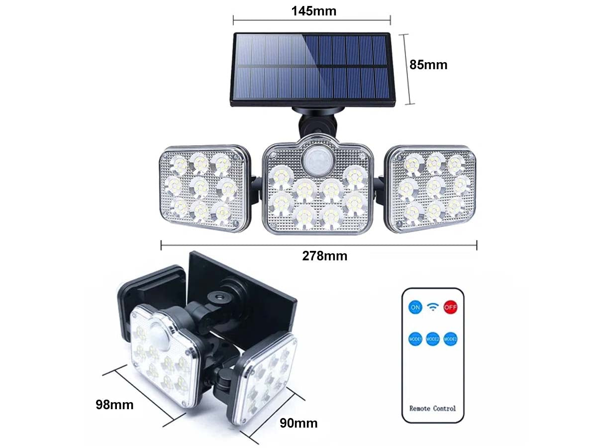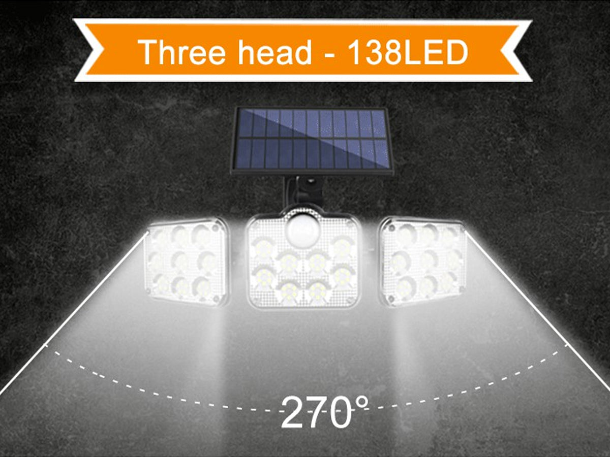 This is a three-headed led solar light with a motion sensor which is perfect for your garden, gates, backyard and etc. This led solar light has 138 SMDs. This led solar light has auto on and off feature. The installation is very easy, you can screw it to the wall without any hassle.