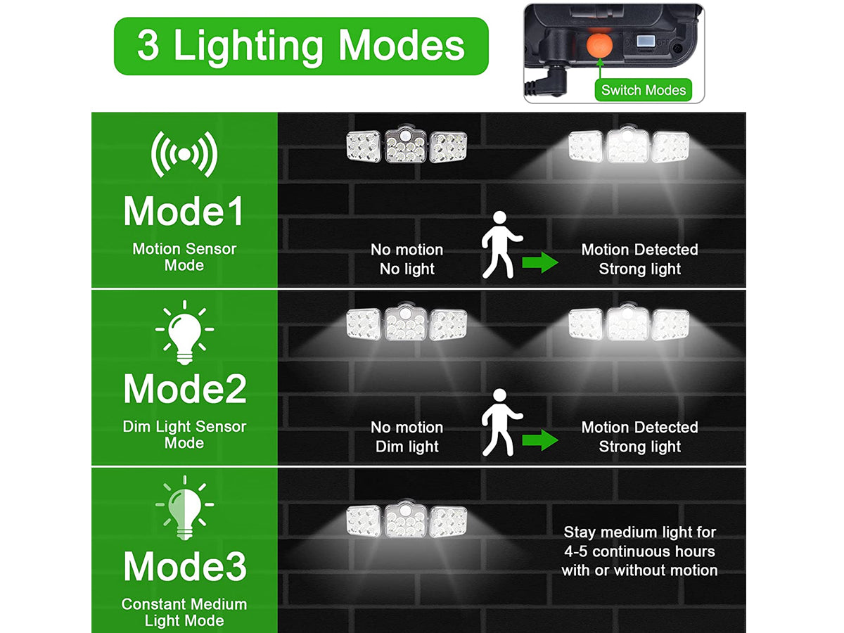 Modes 3. Constant medium light mode: Stays on with medium-light with or without motion detection