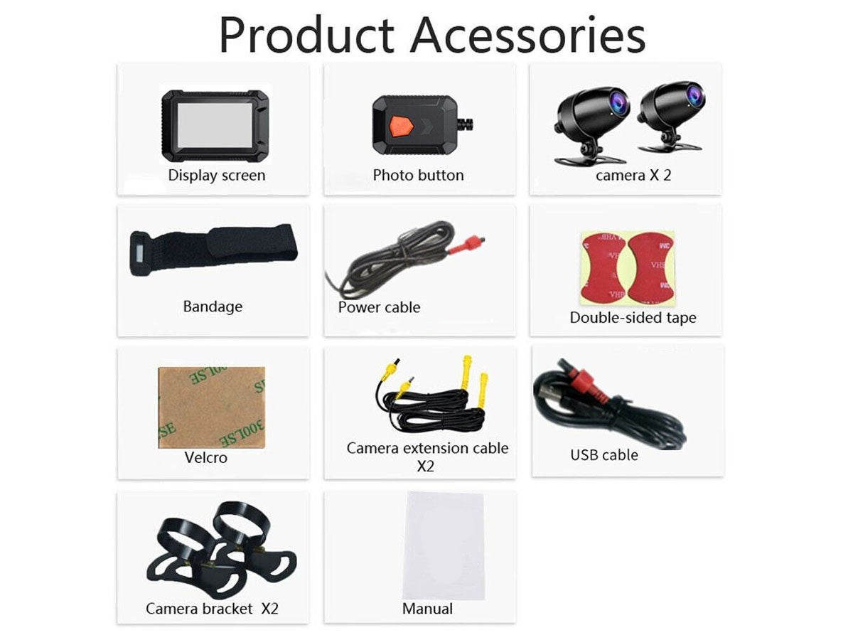 - Motorcycle Accessories Dash Camera with dual front and rear cameras