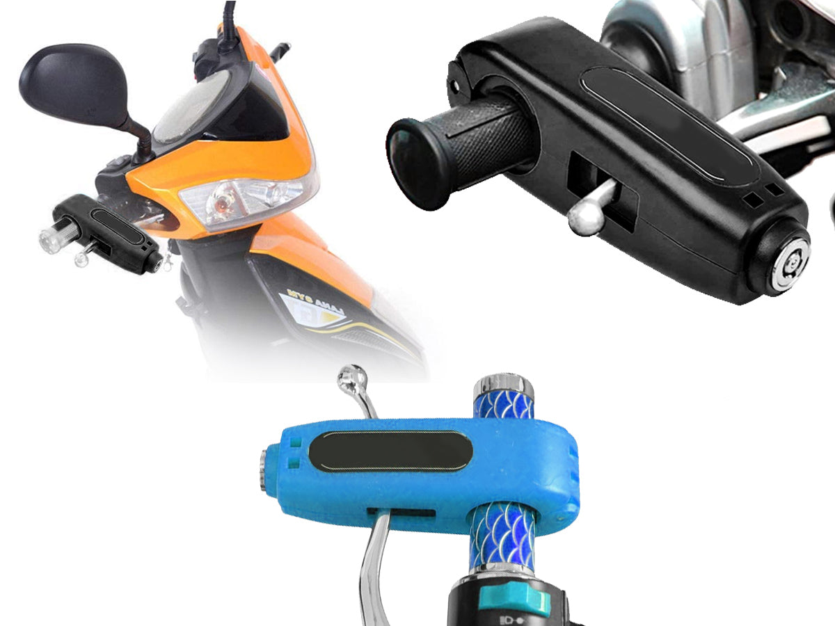 Motor Bike grip Lock is the smarter way of protecting your motorcycle from thieves. It mounts right at the handlebar and locks both throttle grip and brake lever. Unlike disc locks, you can't forget that it is in place. It can fit easily in a pocket, bag, or glove compartment.