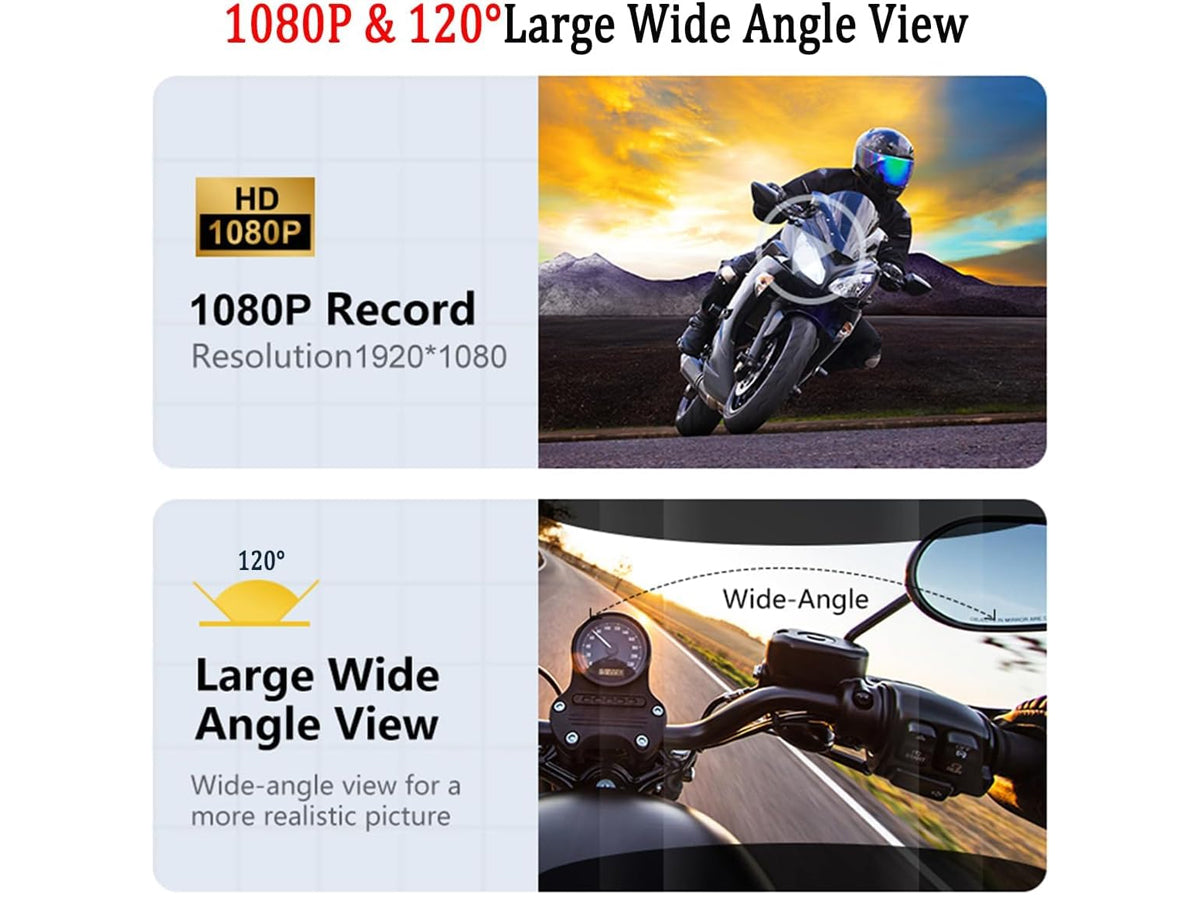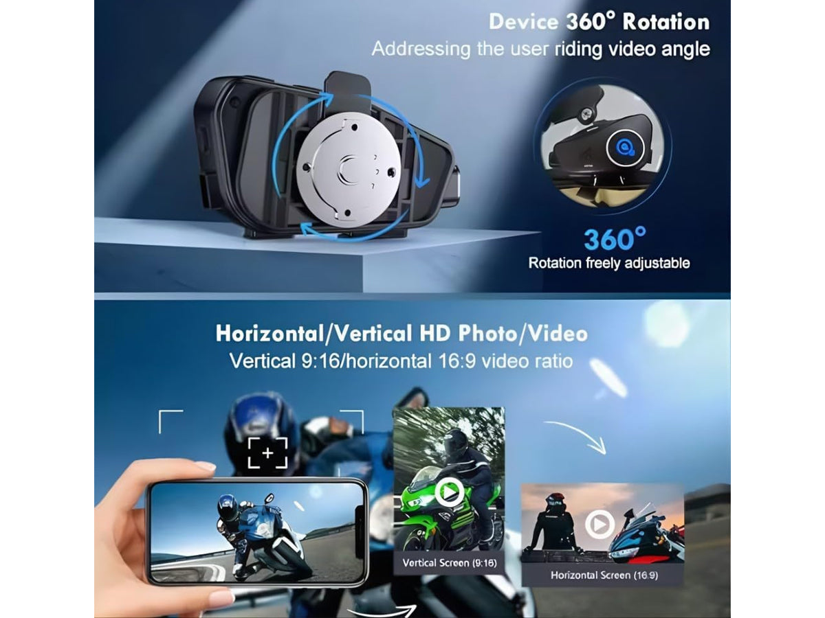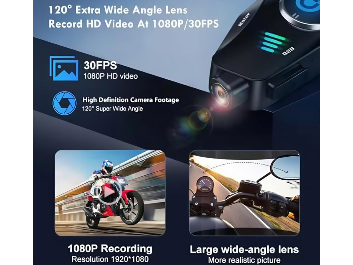 Capture every ride in crisp 1080P HD while staying connected hands-free. The Motorcycle Dash Cam offers an immersive 120° wide-angle view, real-time mobile connectivity, and 360° rotation to perfectly frame your journey. Equipped with Bluetooth 5.5, noise-cancelling stereo sound, and a powerful 1500mAh battery, Motorcycle Dash Cam combines safety, entertainment, and video recording in one sleek design.