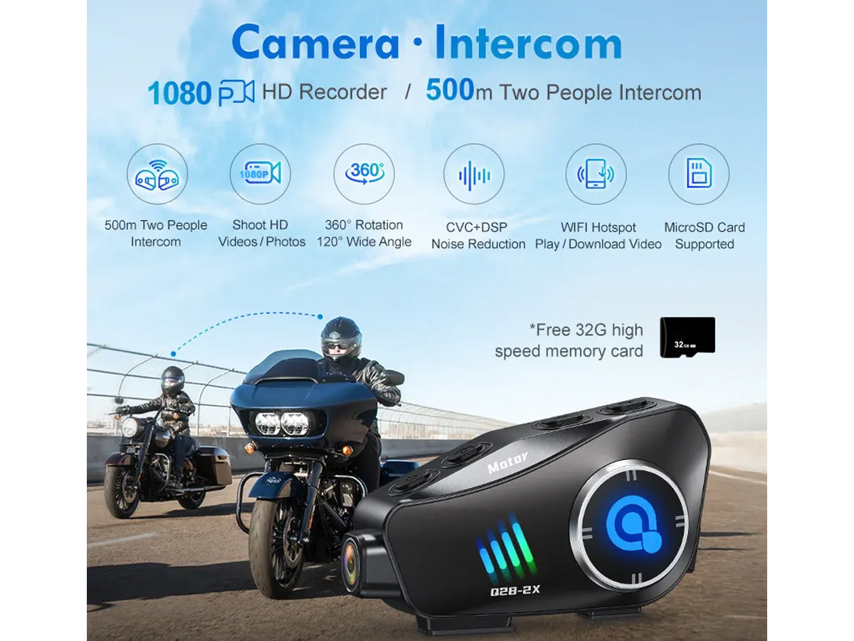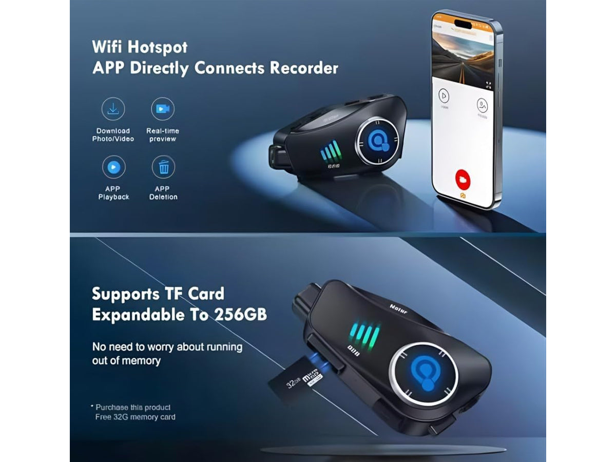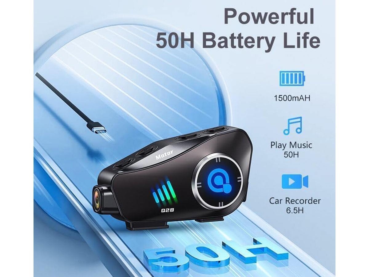 Capture every ride in crisp 1080P HD while staying connected hands-free. The Motorcycle Dash Cam offers an immersive 120° wide-angle view, real-time mobile connectivity, and 360° rotation to perfectly frame your journey. Equipped with Bluetooth 5.5, noise-cancelling stereo sound, and a powerful 1500mAh battery, Motorcycle Dash Cam combines safety, entertainment, and video recording in one sleek design.