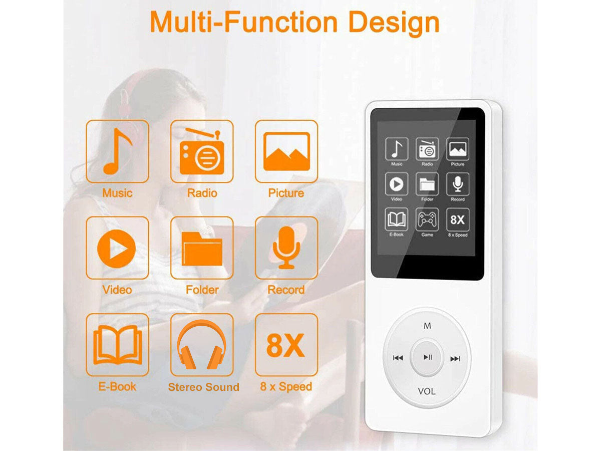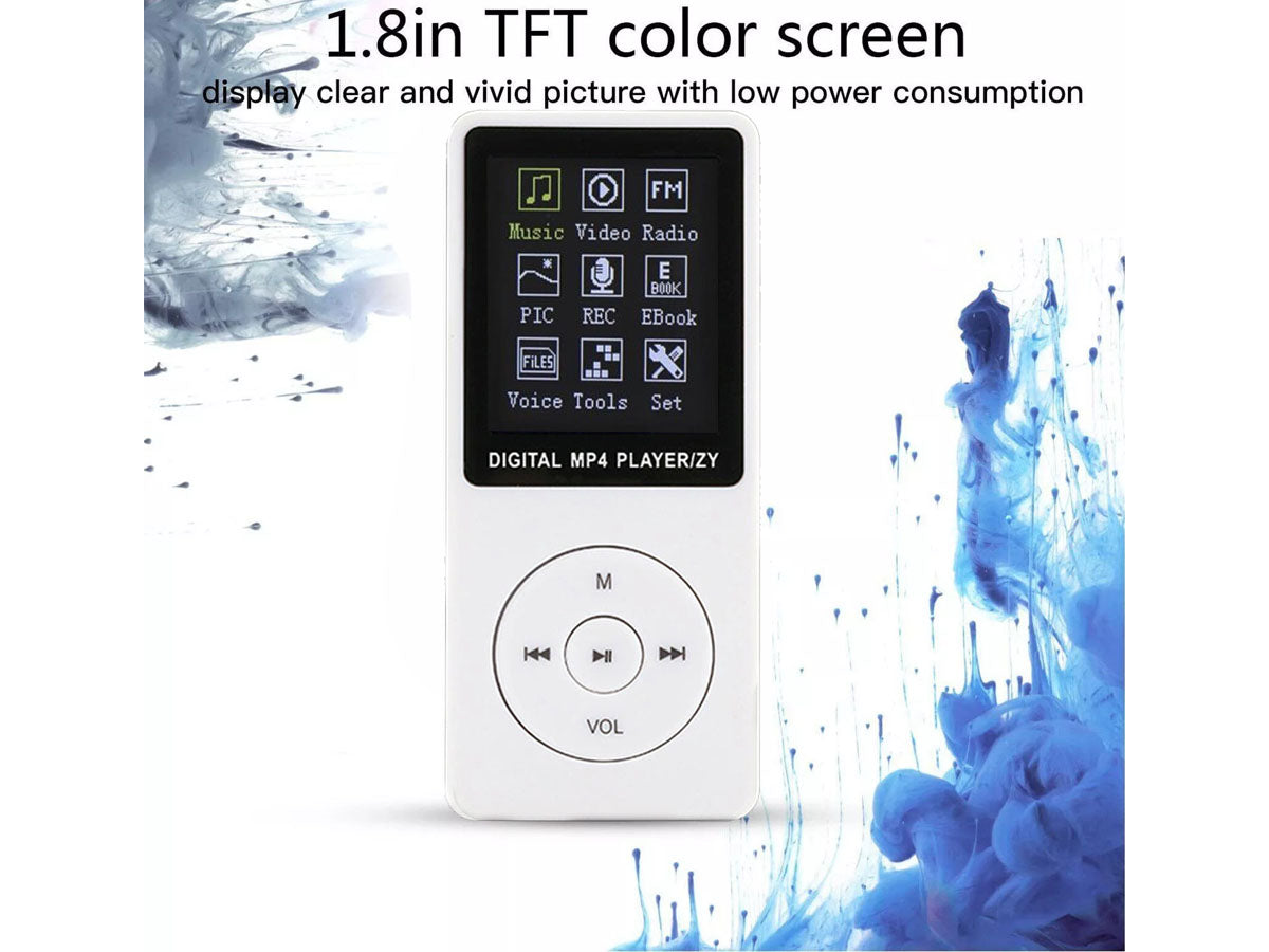 Indulge in uninterrupted entertainment with our Wireless Rechargeable MP4 MP3 Player. This MP4 MP3 Player offers uninterrupted entertainment on-the-go. With a vibrant 1.8-inch TFT color screen, hi-fidelity sound, and noise reduction technology, it ensures crystal-clear audio playback and hassle-free voice recording. Enjoy versatile features like FM radio, FLAC, and APE format support, and convenient media organization. With up to 6-8 hours of battery life, it's perfect for commuting, traveling, or relaxing at home.