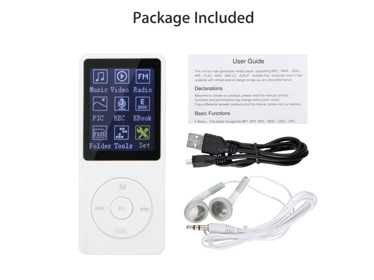 MP3 Video Playback | E-Book Reader | FM Radio | Photo Viewer | Voice Recording