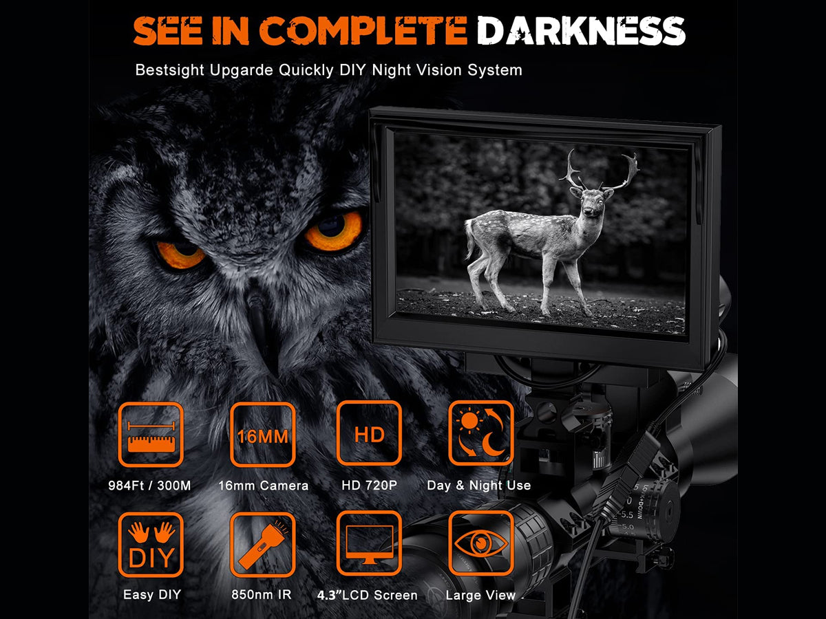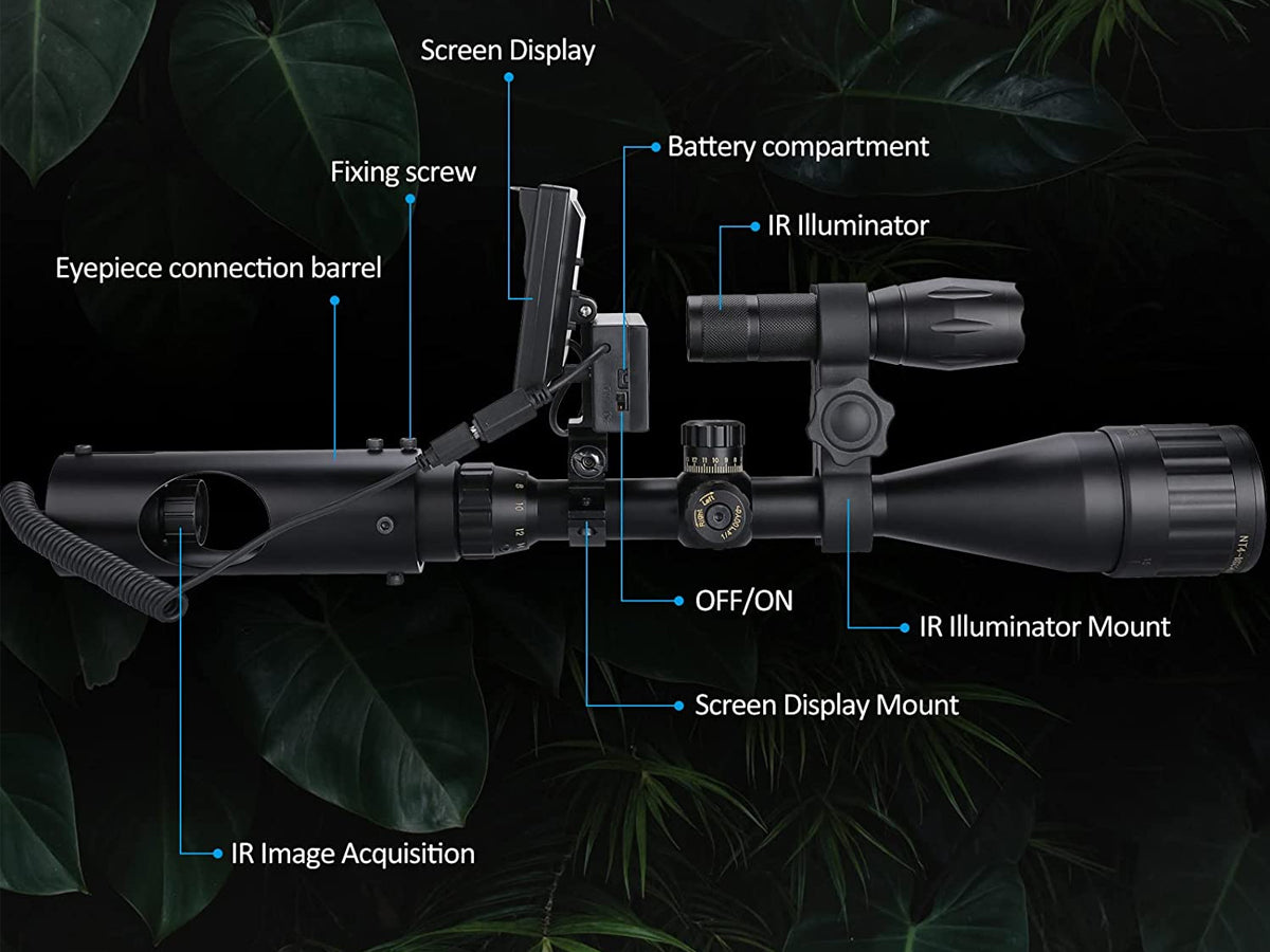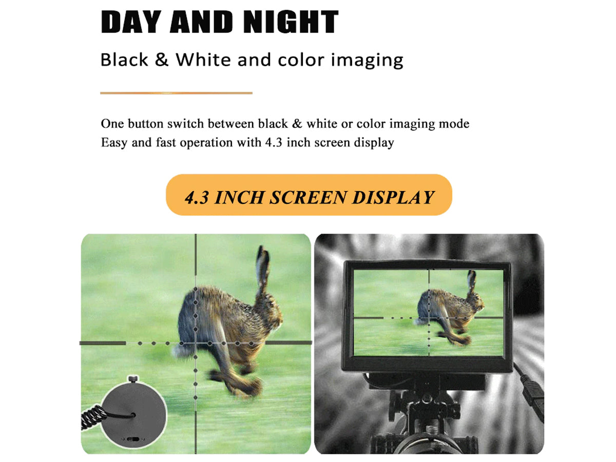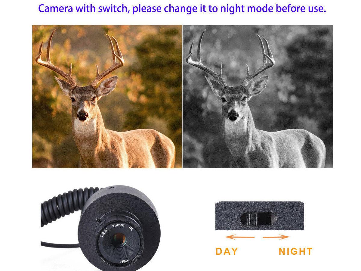 This 3MP Hunting Trail Camera is equipped with a 4.3-inch screen and offers Hunting Night Vision Scopes a bright and clear view, the effective range is about 300 meters, which will greatly improve your hunting range at night. It can record videos and take photos in complete darkness at night. The camera has day and night modes to choose from. The monitor has an extendable cable for easy viewing of targets in different positions or situations.