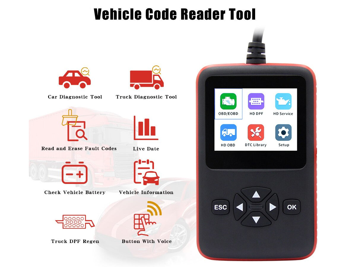 This OBD2 Scanner is perfect for all 12-24V Car, truck, and bus OBD2-compliant vehicles.