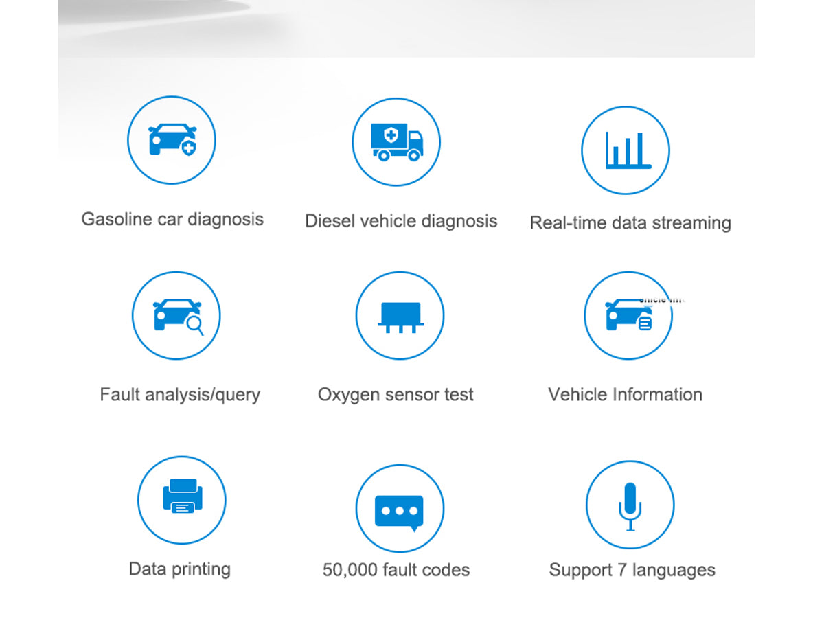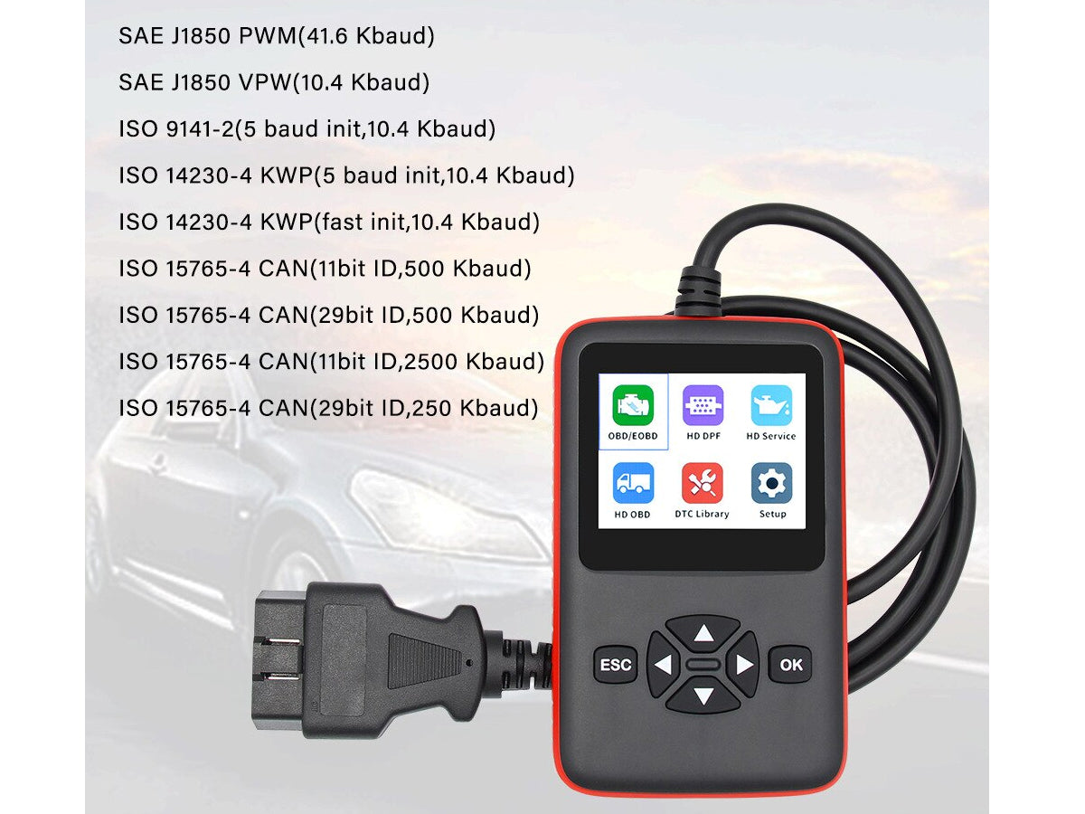 This Car and Truck Diagnostic OBD2 Scanner supports nine standard protocols of OBDII/EOBD and is compatible with common truck protocols, such as SAE J1939/SAE J1708 and other common truck protocols. Plug and play can quickly read the fault information and vehicle parameters of trucks and cars. This OBD2 Scanner is a more comprehensive fault diagnosis instrument.