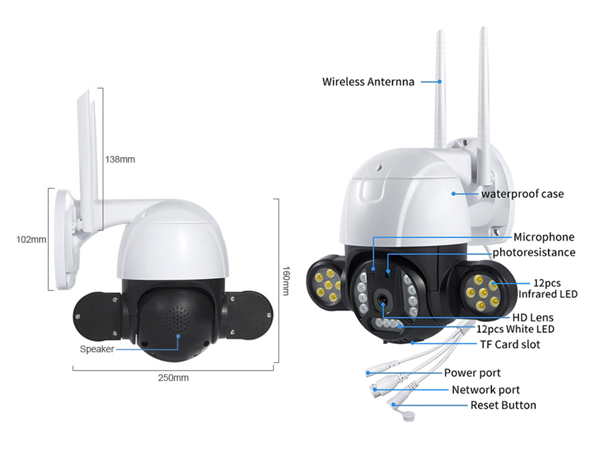 - LED quantity: 12pcs white LED + 12pcs Infrared LED