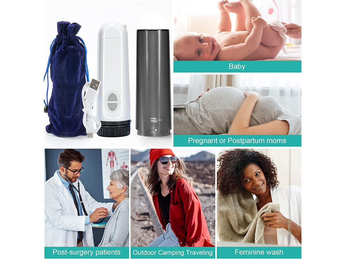 The 2 in 1 Rechargeable Bidet Spray Gun Kit is a versatile personal hygiene tool designed for convenient and comfortable cleansing. It comes with a water bottle that can be quickly filled and attached to the spray gun for on-the-go use. The adjustable water output allows for customized cleansing, while the waterproof design ensures safe and reliable operation. With two speed settings, users can choose between a gentle or powerful stream for effective cleaning. Whether at home or on the go, the 2 in 1 Rechargeable Bidet Spray Gun Kit offers a convenient and hygienic solution for personal cleansing needs.