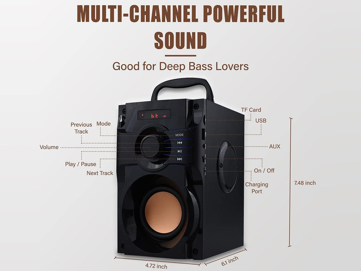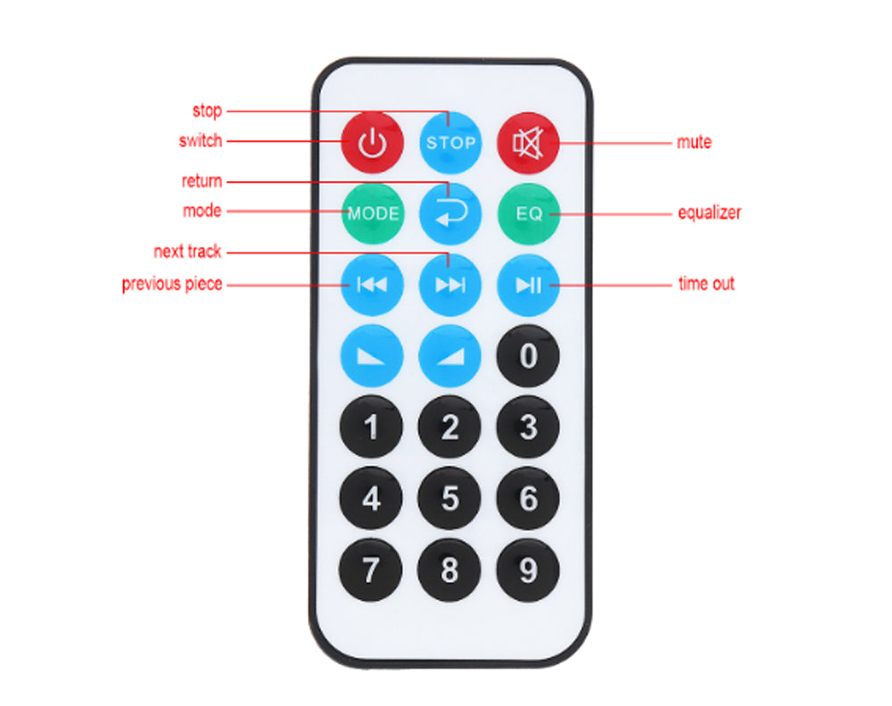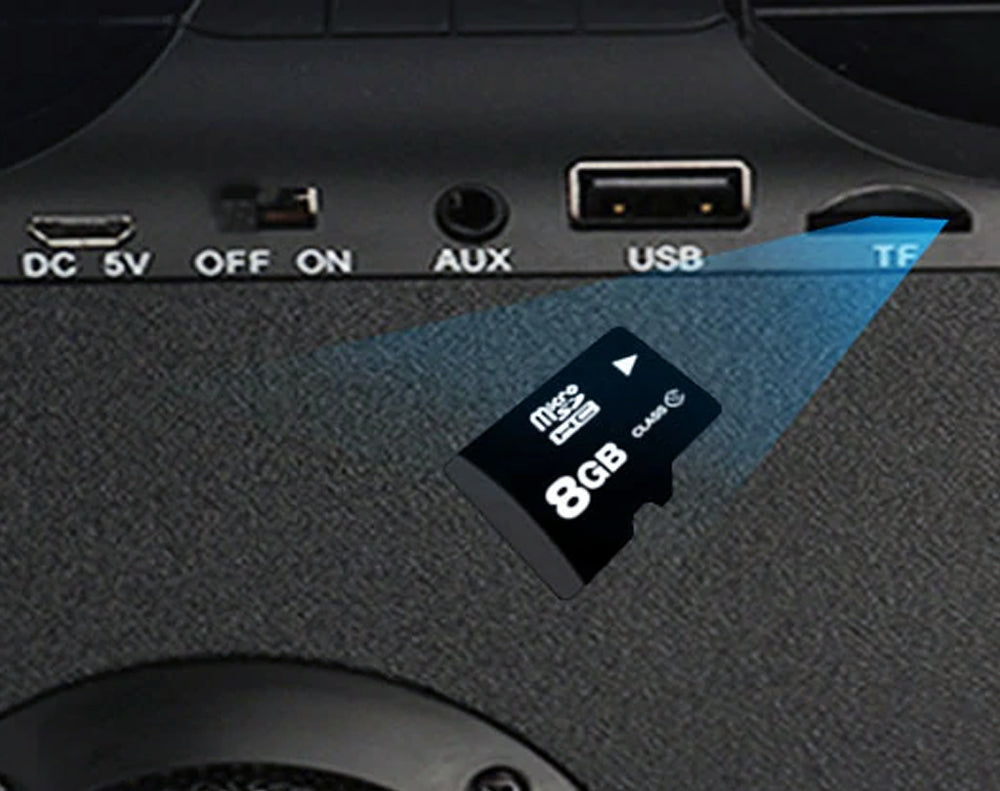 - Function: Bluetooth / Support TF Card / Support U-Disk / Remote Control / FM / AUX Input.