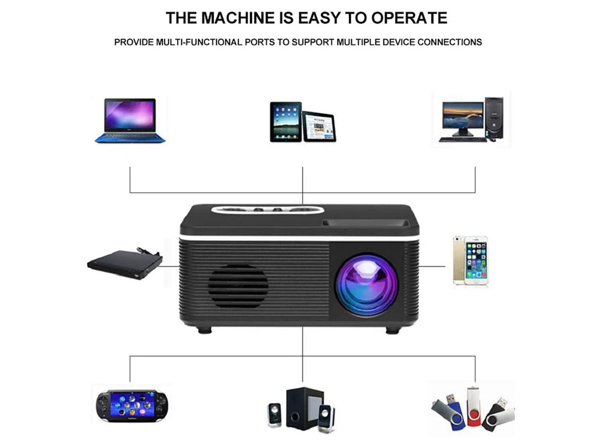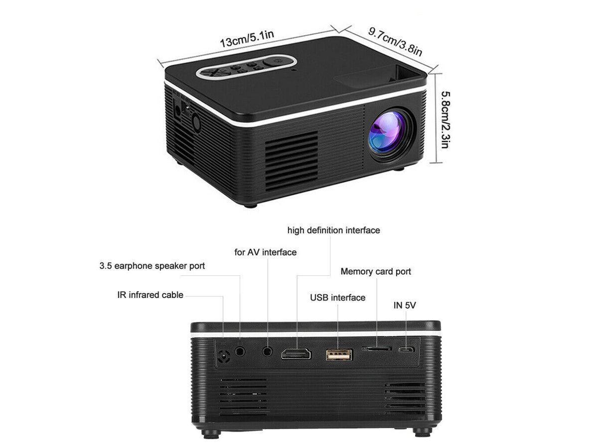 This S361 Portable Mini Projector with a built-in miniature speaker supports up to 1080P resolution which is truly HD quality. This dual-powered portable LED Mini Projector is equipped with an 800 lumen LED lamp that can be powered by a 5V-2A power bank. In addition, this LED Mini Projector features excellent heat dissipation, with stable performance and a long lifespan. A brilliant device for home and away use!