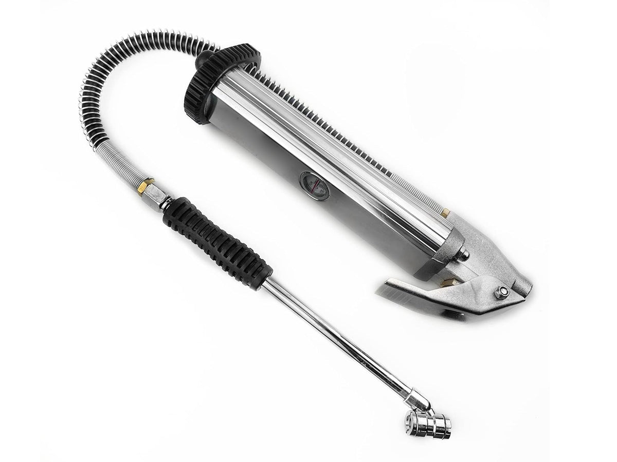 The flexible hose and rubber impact bumpers provide accessibility and shock protection. Ideal for professionals and DIYers, the user-friendly design includes a twin push-on tire valve connector and a linear pressure scale measuring in PSI, Bar, and KPA. Keep your tires in optimal condition with this reliable and convenient tire inflator gauge.