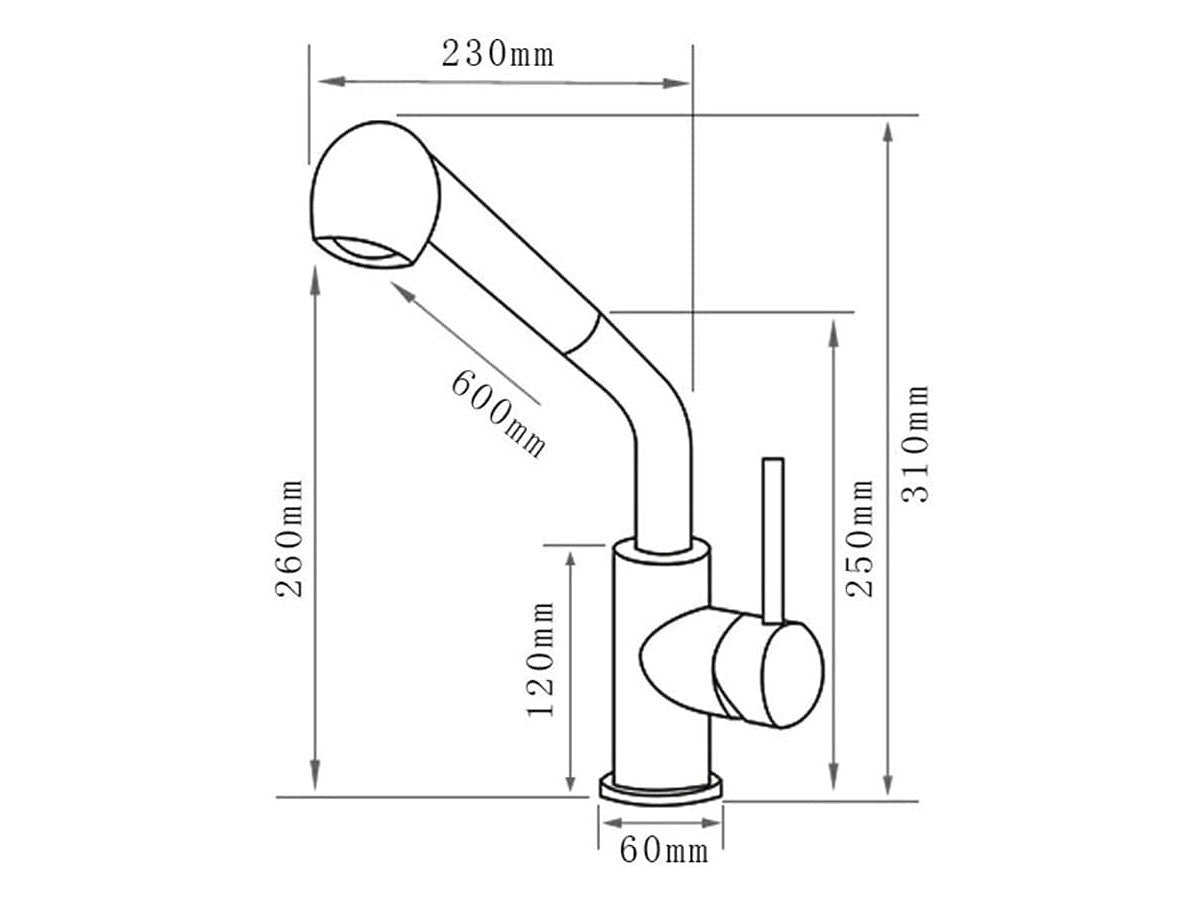 - About 0.5 m pull out hose allows you to easily reach all areas of your sink