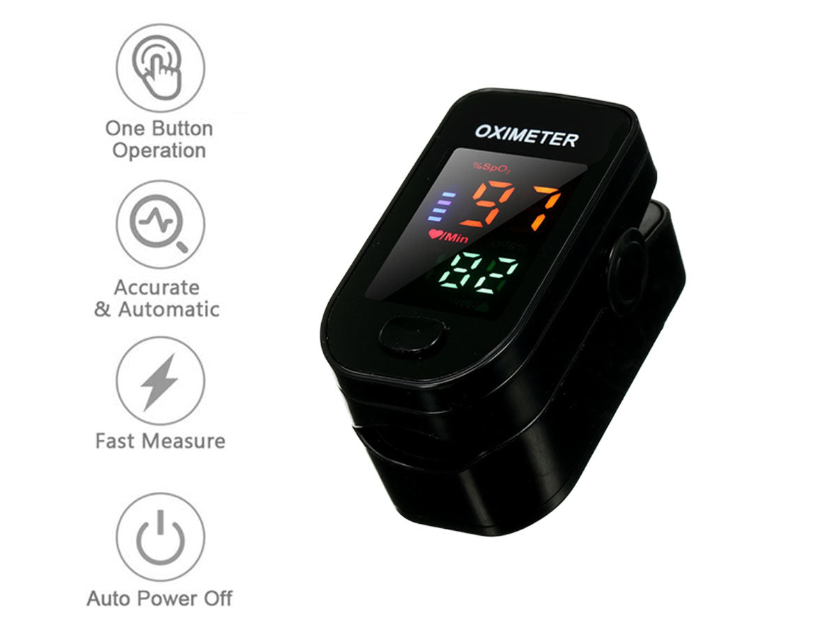 The Pulse Oximeter Electronic fits all finger sizes, it measures the level of oxygen in the blood and reads the pulse rate in just eight to ten seconds. The LED display cover prevents ambient light washout, making readings crisp and clear. Pulse Rates are graphed on the bright LED display.