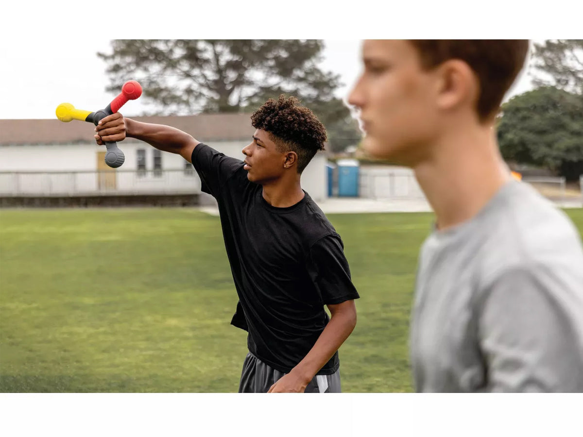 This Hand-Eye Coordination Training helps athletes improve their reaction time and rapid decision-making by engaging their brain and body during training. This Hand-Eye Coordination Training helps athletes think quickly and adjust to plays in front of them for game-like situations. Three-pointed design features rounded ends and center for more ergonomic catching and throwing; toss in the air and call out a color to catch.