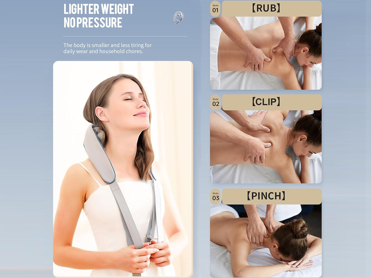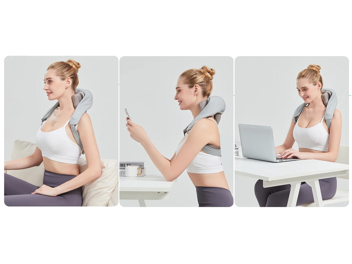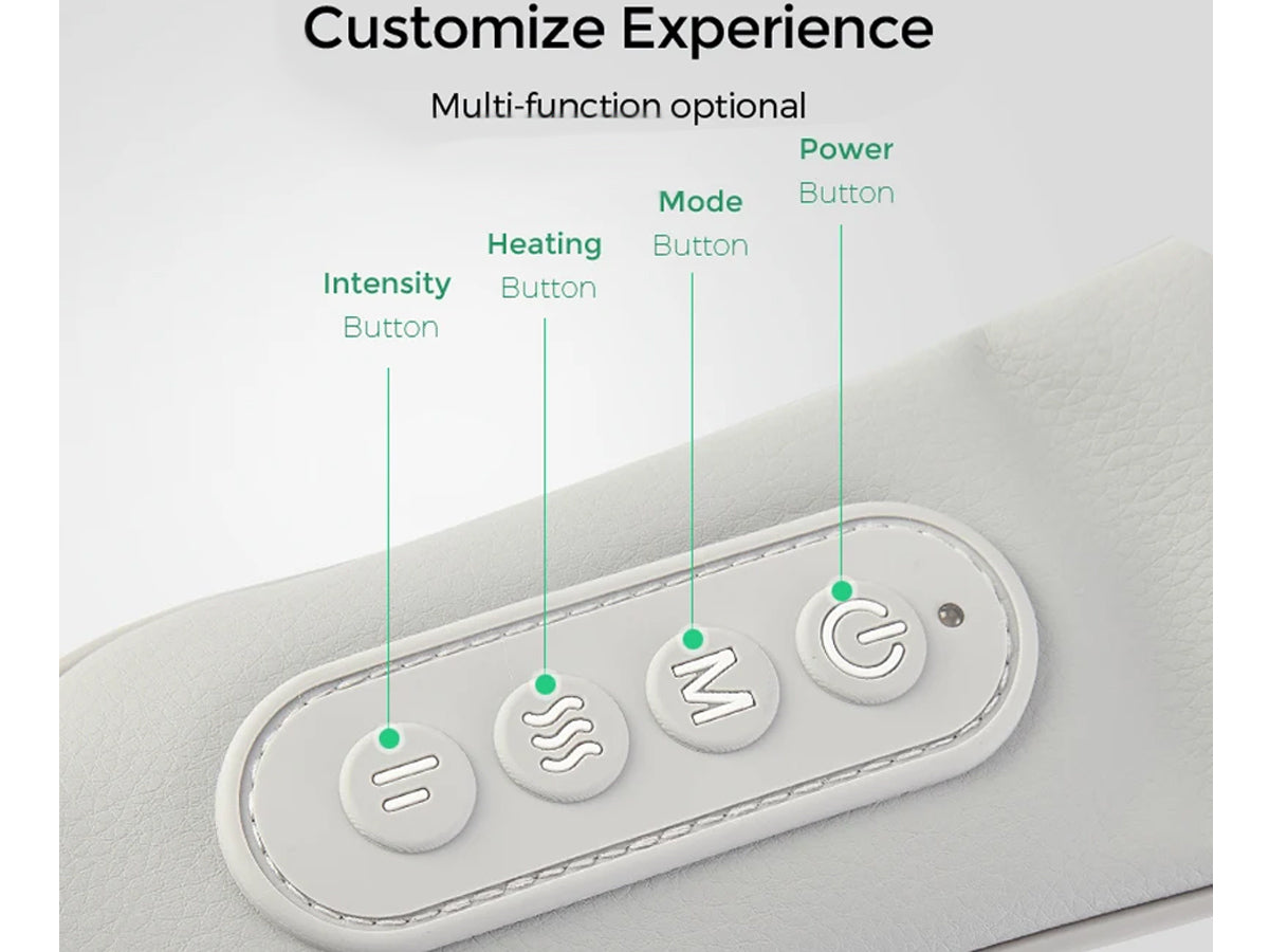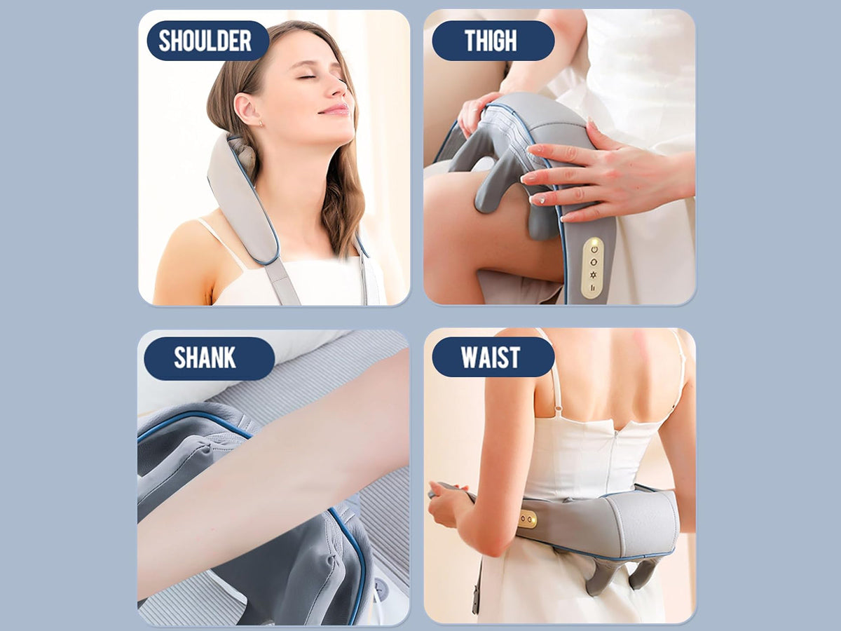 Targets neck, back, shoulder, foot, and leg tensions, providing versatile relaxation post-workout, after a long workday, or during travel, offering adjustable massage techniques and heat therapy.