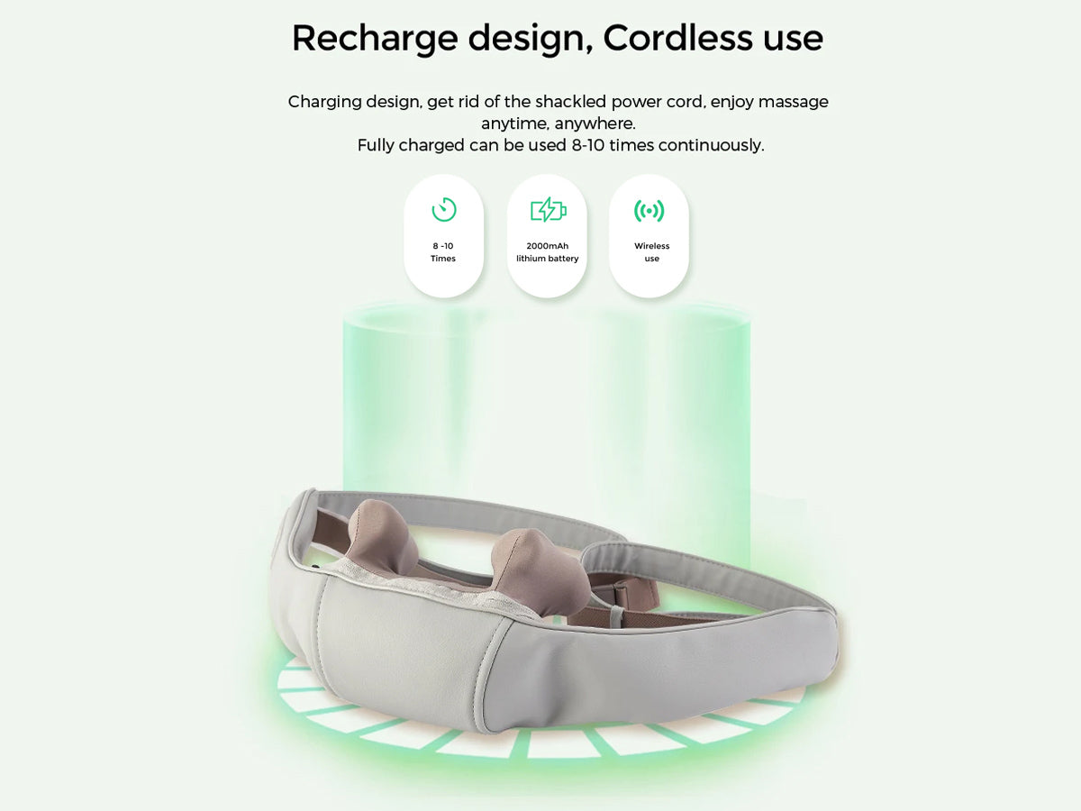 - Built-in 2000mAh rechargeable battery offering 90-100 minutes of uninterrupted massage