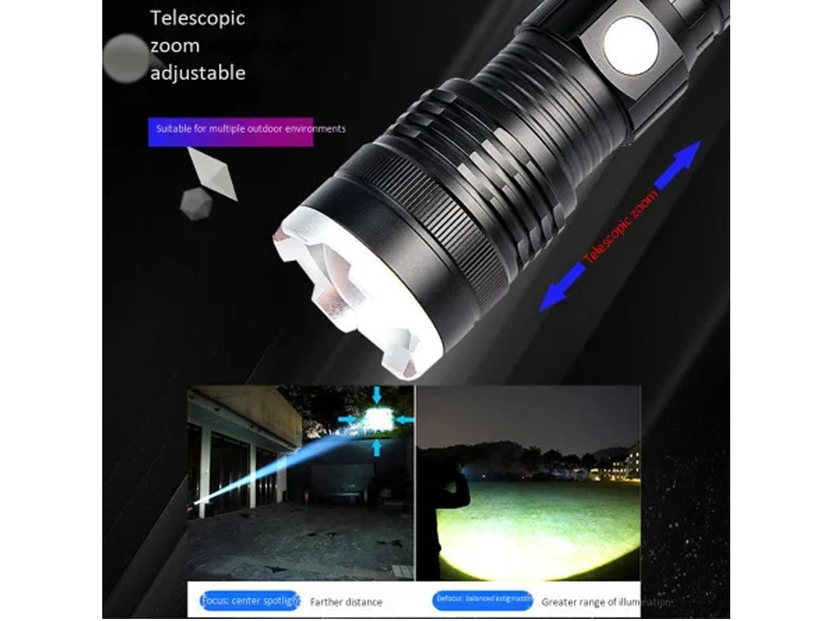 Are you in search of a good yet affordable Rechargeable Torch LED? If your answer is yes then you have landed at the right place. This Rechargeable Torch LED utilizing the latest generation P50 LED chip generates an ultra-high-output up to 4200 lumens. Rechargeable Torch LED features Strong, Medium, Weak and Strobe Flash total of 4 kinds of lighting modes. Besides, the powerful Rechargeable Torch LED can zoom in to focus on objects or zoom out to sweep a large area by pulling the flashlight head. Meeting your different lighting needs.