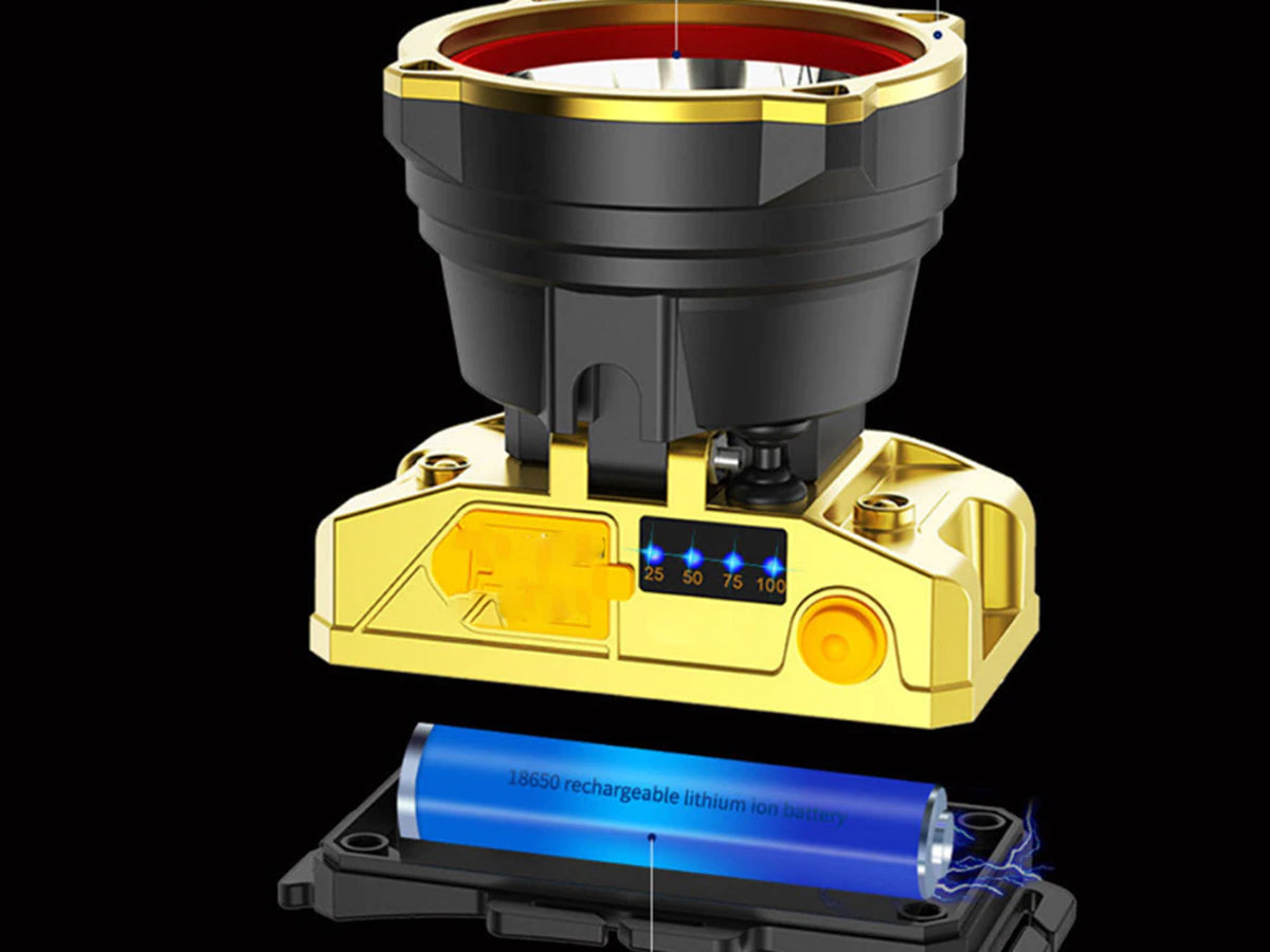 This Head Torch LED Headlamp with a built-in 18650 rechargeable battery and 4 power indicator lights (25%-50%-75%-100%), notifies you to charge early. The Headlamp Rechargeable can be adjusted to up to 90°. This Headlamp Rechargeable with strong-weak-burst flashlight modes is so lightweight and comfortable that you won't even feel it, even if you wear it all day.