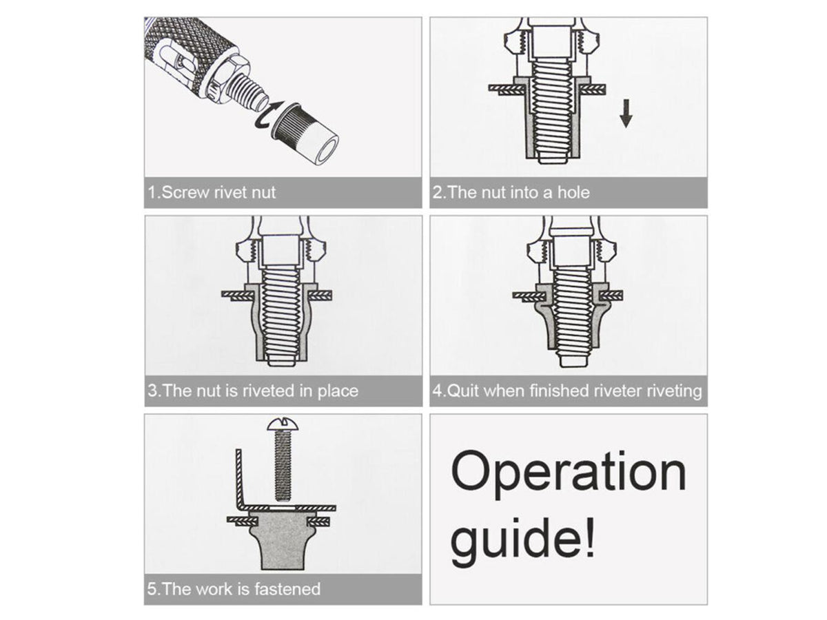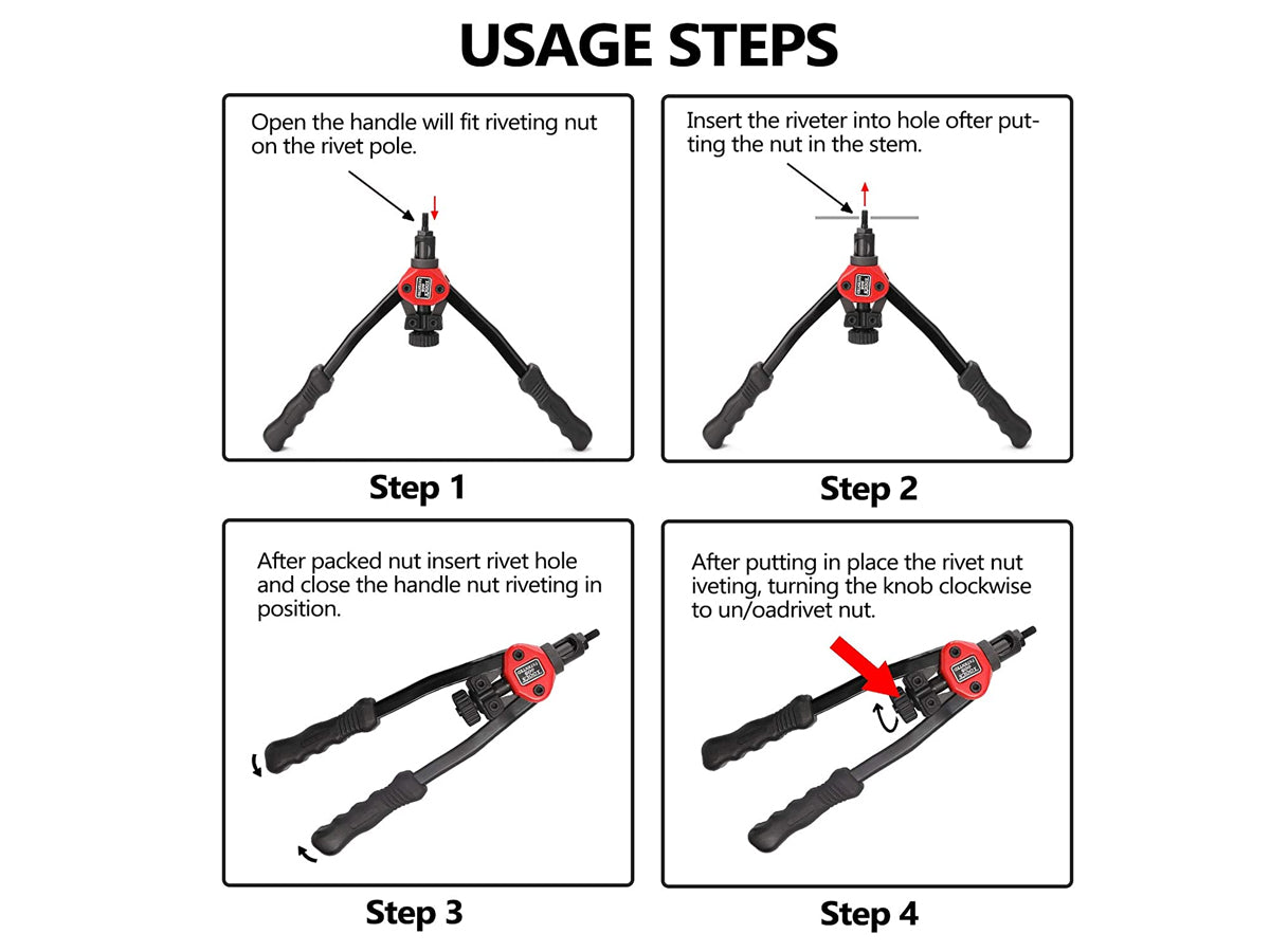 Whether it's body panels, firewall additions, off-road modification, or bicycle attachments, all you need is a rivet nut tool and some rivnuts. Our 13-inch rivet nut tool is an integration of several latest design concepts- simple use, effort saving, high reliability, and comfortability of ergonomic design.