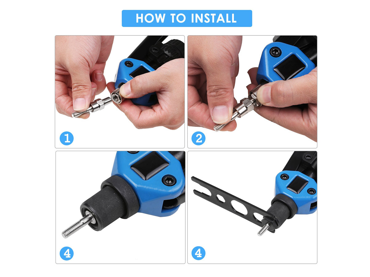 This Rivnut Tools Rivet Nut Kit 300 Pcs has been designed with a no-frills design, and it features a tool-less, quick-change head so you can easily change mandrels and nose pieces by hand. Easy to grip and extremely versatile, this rivet gun is truly one of a kind!