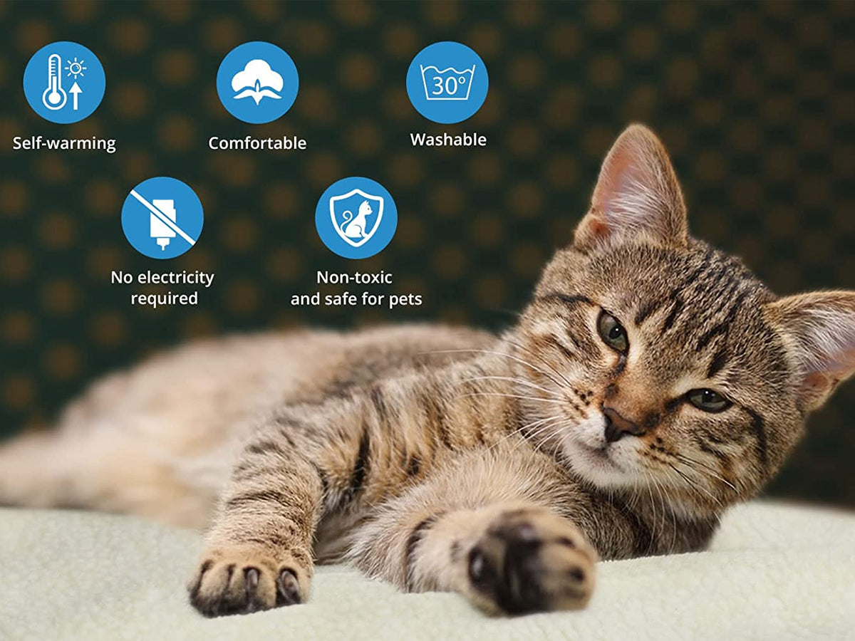 This Self Warming Pet Pad radiates heat back to your pet, providing a Cozy Warm Place For Napping. The Thermal Pad Is Made Of Soft Lamb Fleece, Comfortable To Touch, Making A Fluffy Cushioned Surface for Pets to rest. The Non-Slip Bottom with Rubber Dots prevents shifting so your pet can navigate dreamland undisturbed. Easily clean the cover by machine washing with the washable and removable Soft Fleece Cover. This has a Portable electricity-free design, ideal for bedding accessories for Traveling, Hiking, Camping, Picnics, And Other Outdoor Activities.