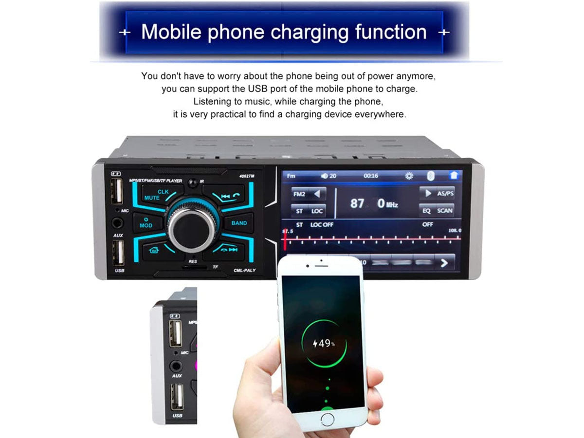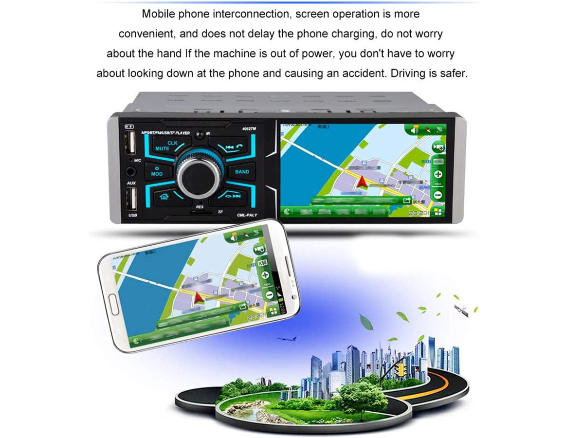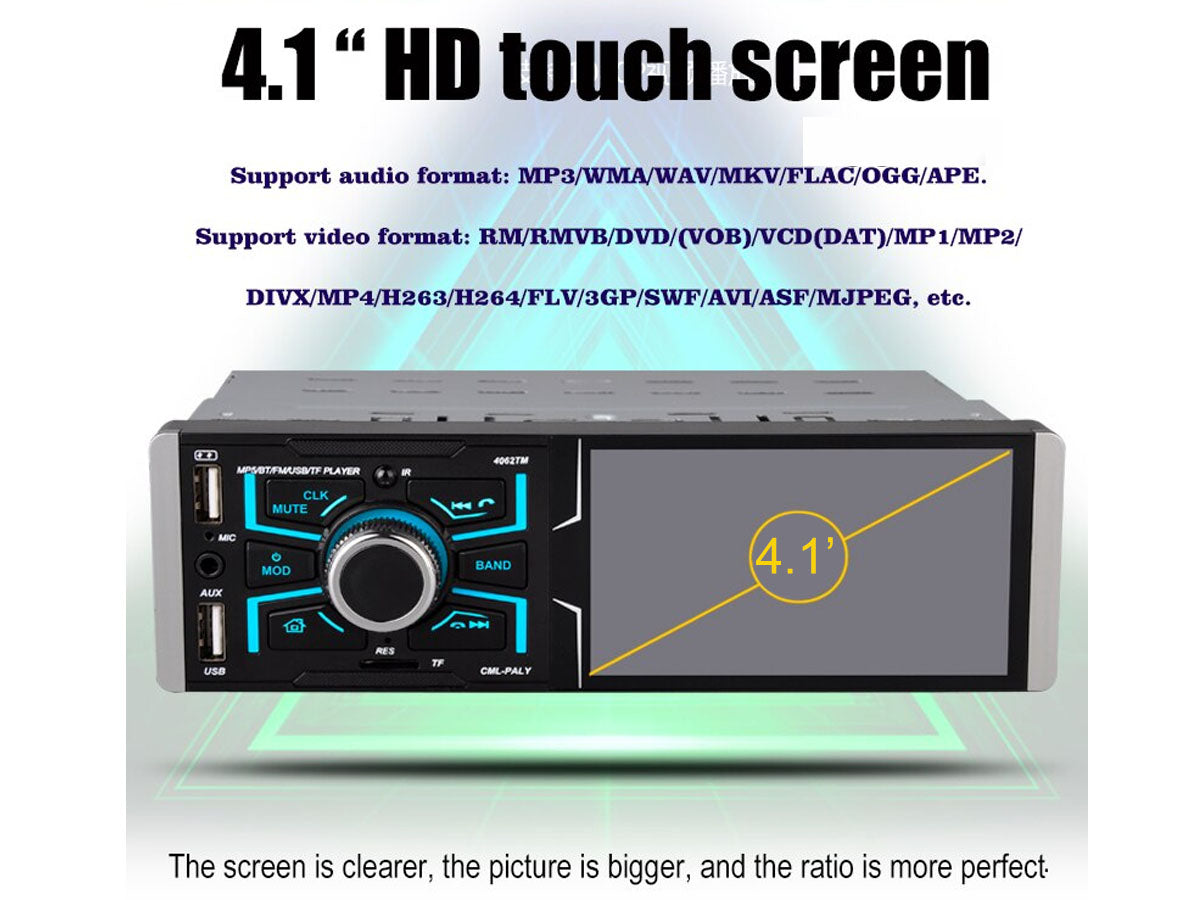 - Single Din Car Radio with 4.1-Inch Touch Screen