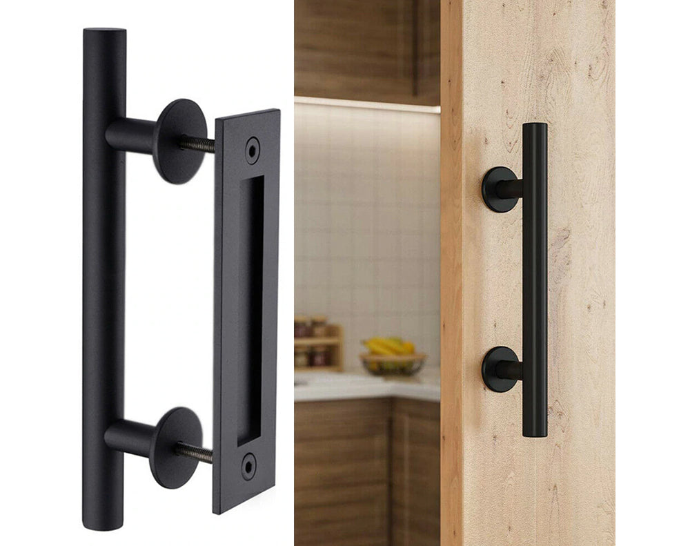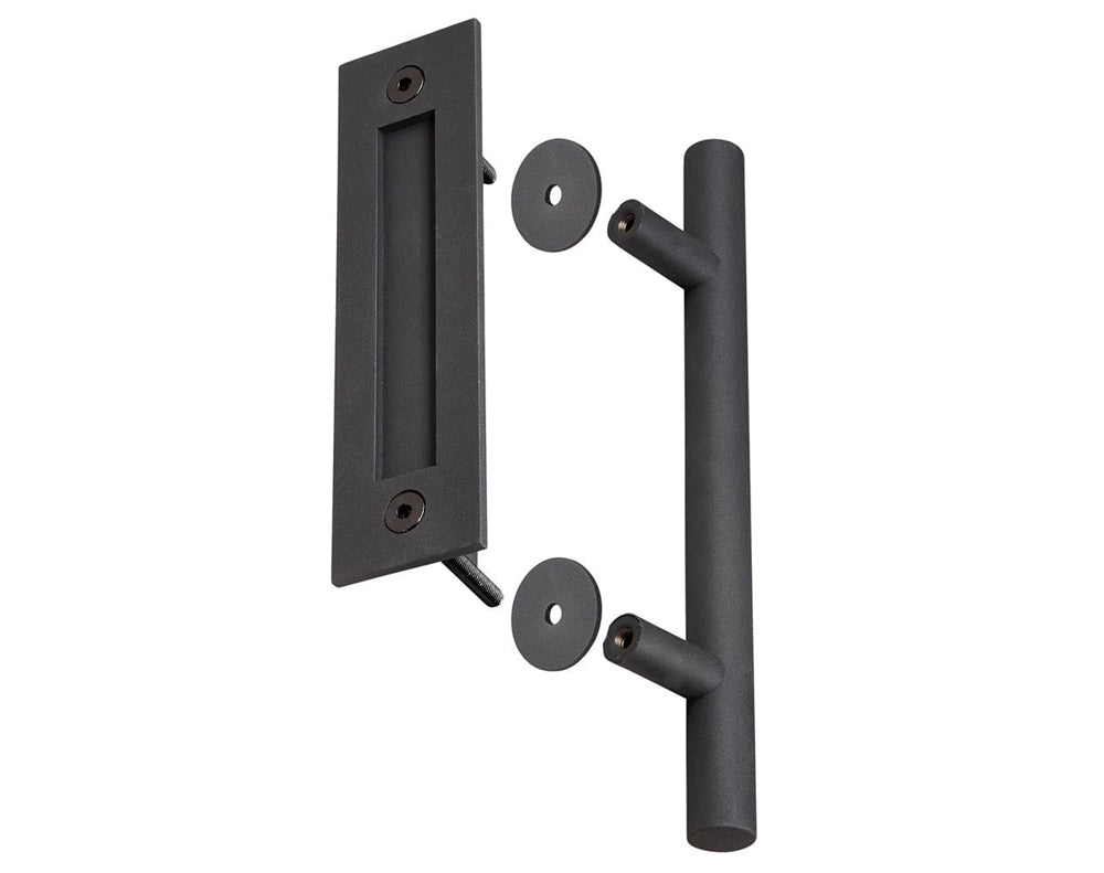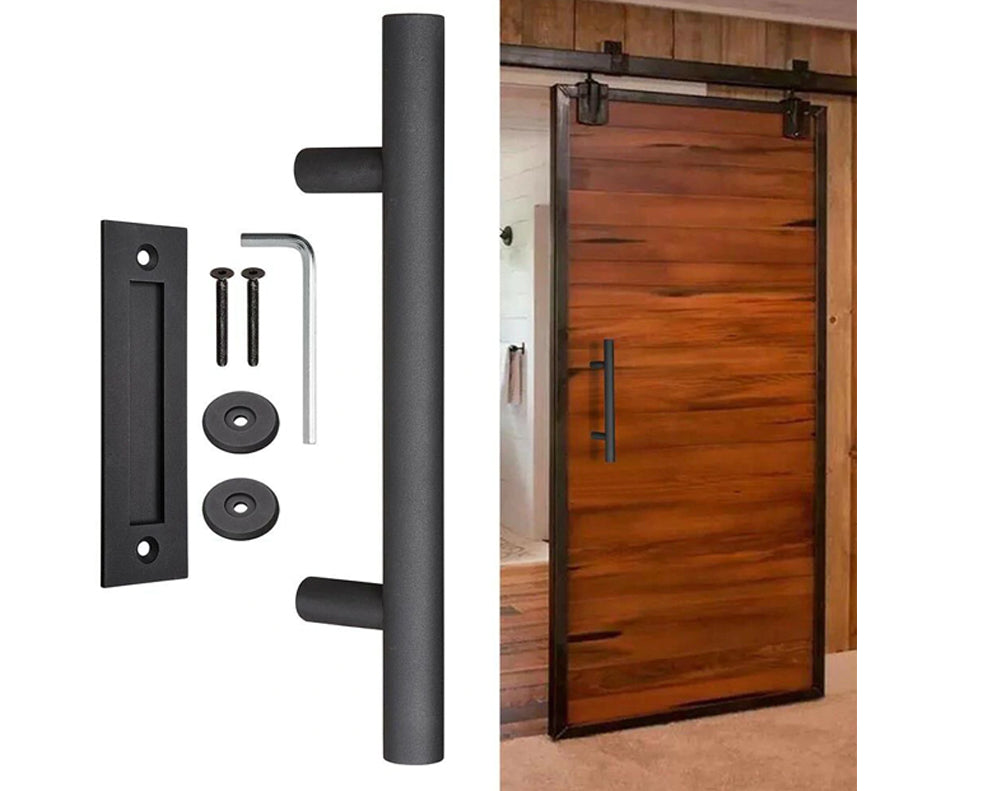 SUPERIOR QUALITY: This Sliding Door Handle is made of high-quality carbon steel and finished in matte black through a powder coating process under high temperature. This solid and heavy-duty handle set can resist rust, corrosion, and deformation for years It also has an Ultra Thin Backplate which does not need to carve.
