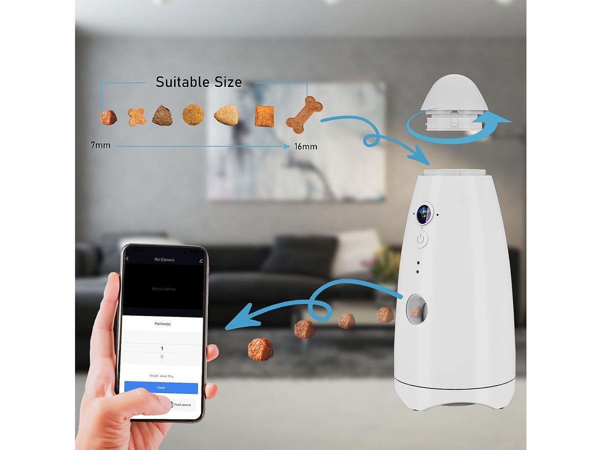 - Treat Tosser allows you to remotely dispense treats to your pet and keep them engaged