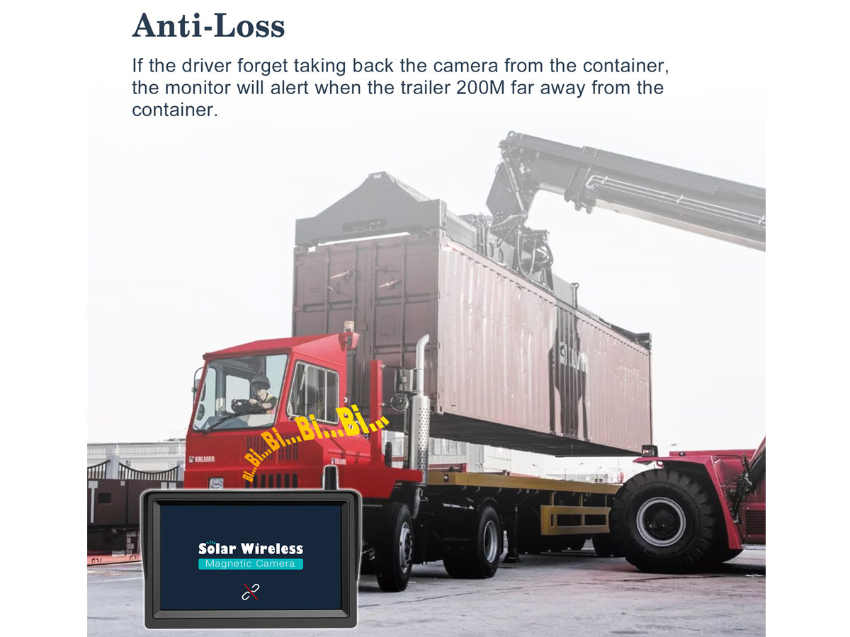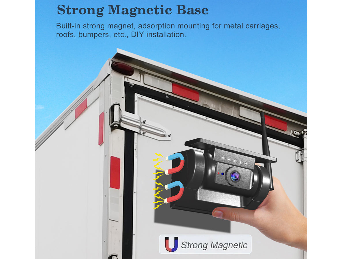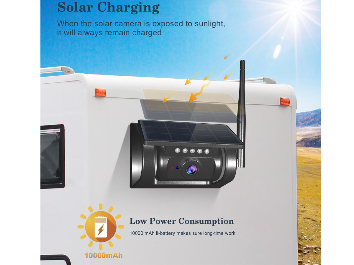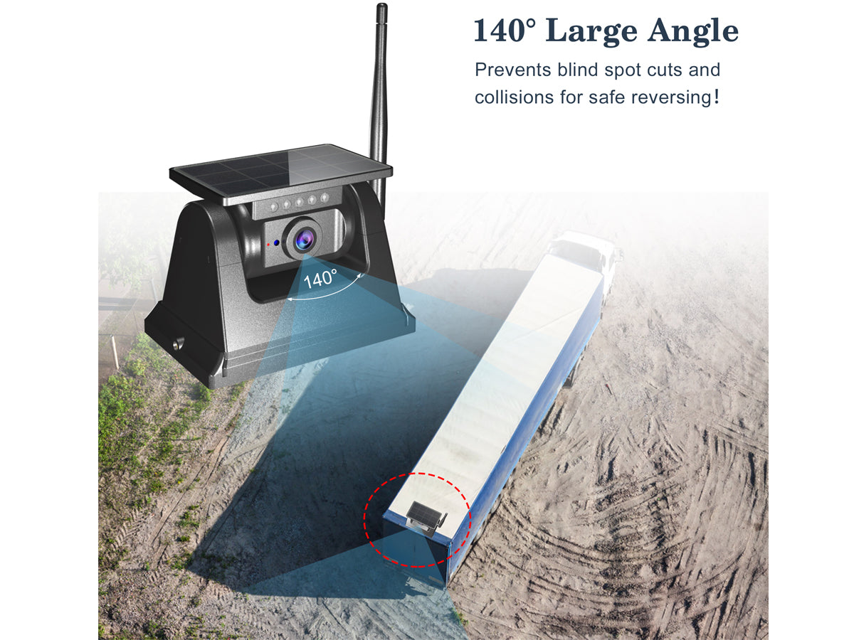 Enhance your driving safety with our 5-inch Solar Magnetic Wireless Reversing Camera. This advanced system offers wireless transmission, solar and type-C charging, a 10000mAh battery, an IP68 waterproof rating, a 140° wide viewing angle, an Anti-loss function with an alarm, IR-CUT and Smart IR for automatic night, ensuring superior visibility and easy installation for safe reversing.