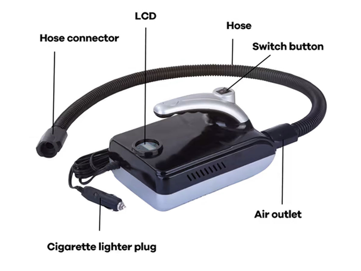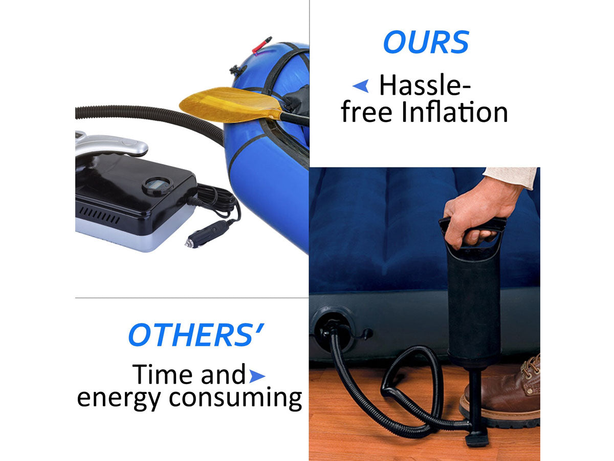 This air pump is suitable for most inflatable products, such as inflatable SUP stand-up paddle boards, inflatable boats, rubber boats, air beds, air cushions, inflatable tents, etc.