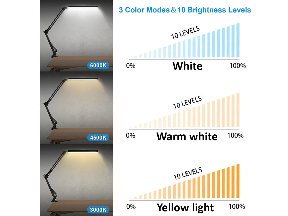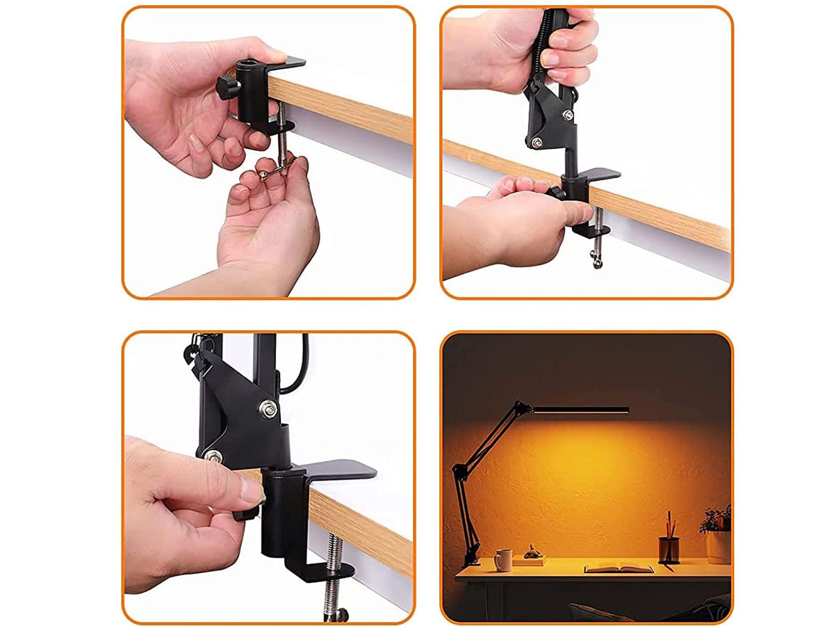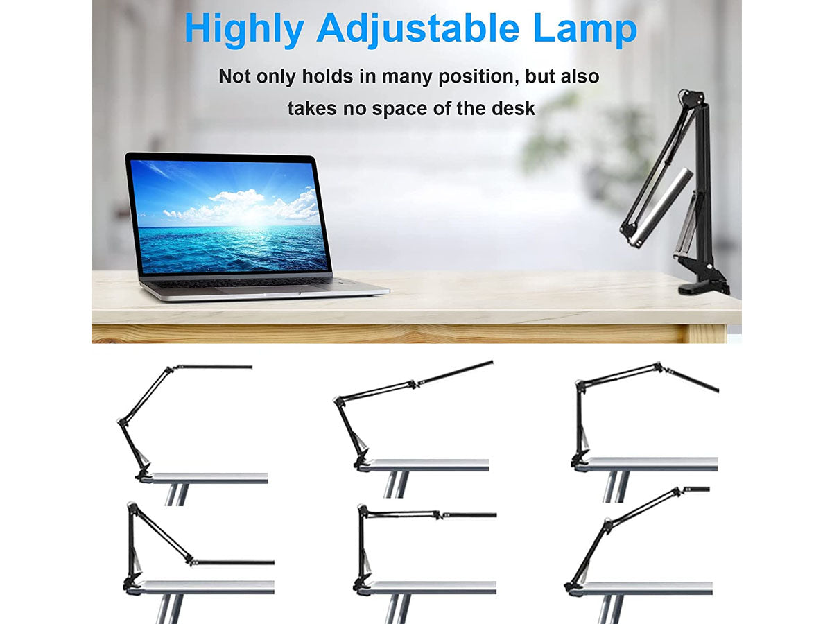 Upgrade your office or workspace lighting with our 10W three-axis swing arm clamp lamp, which is an excellent replacement for old desk lamps. This lamp provides customized lighting directions and comfortable, eye-friendly illumination for reading, working, or any other activity.