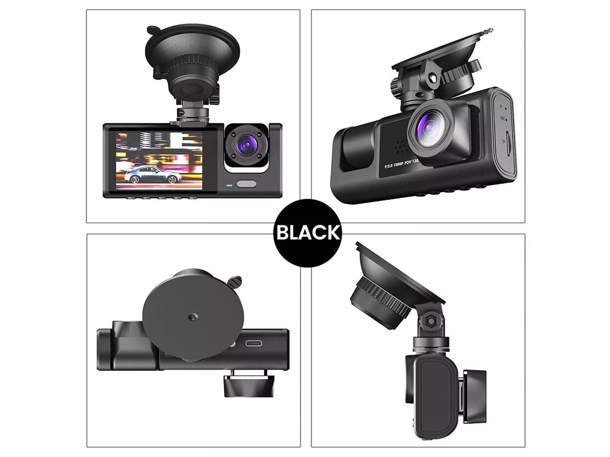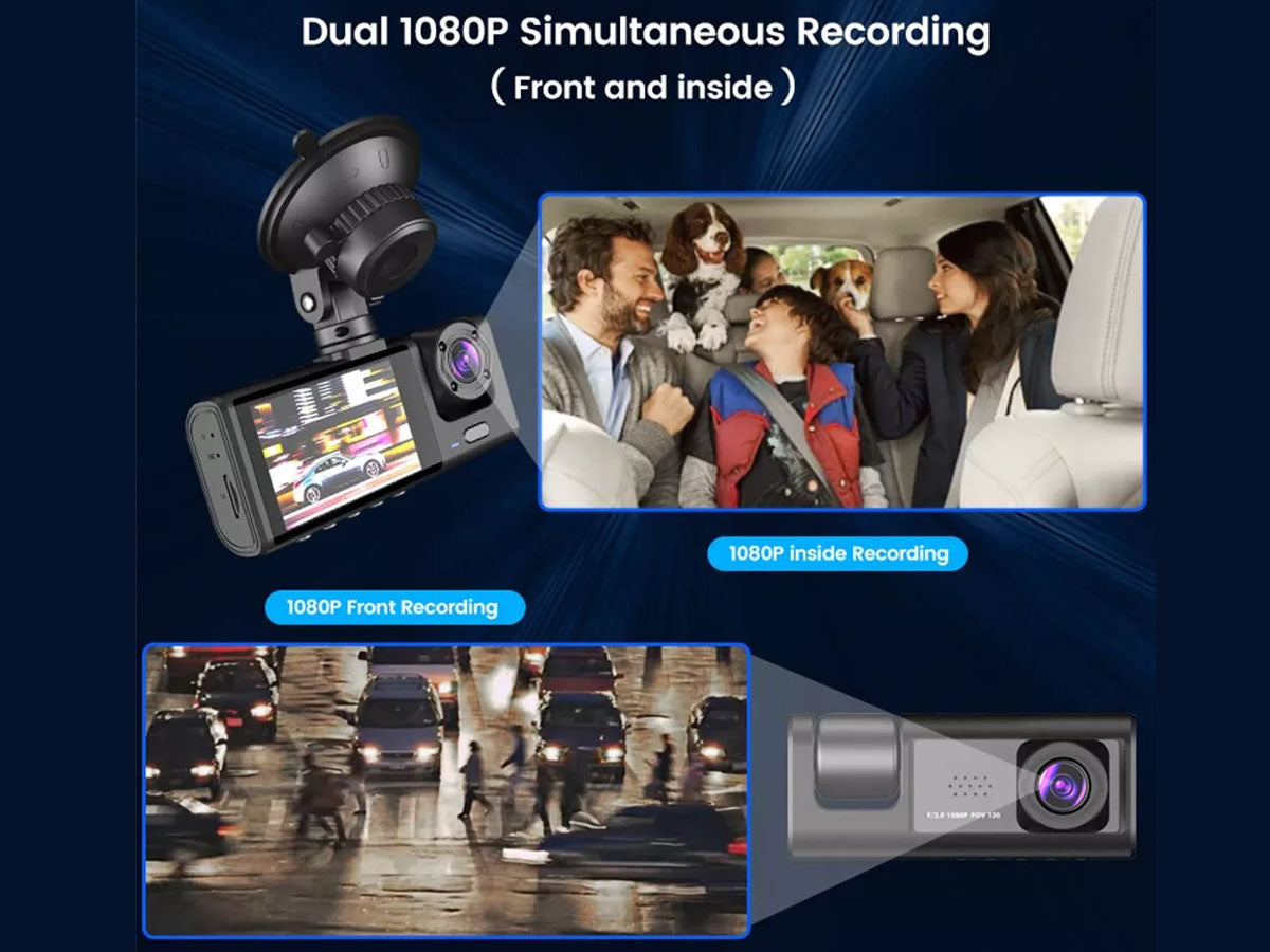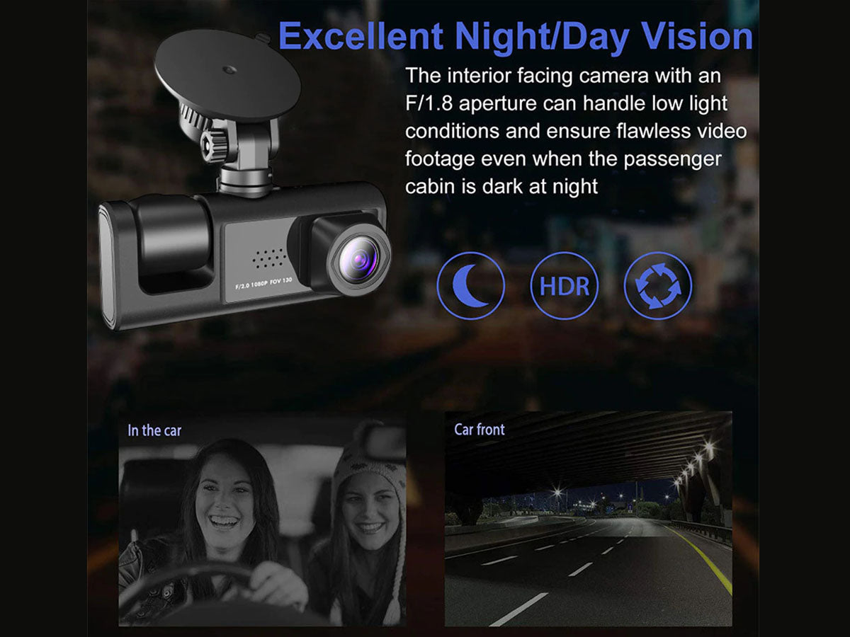 - Triple 1080P Front, Inside, and Rearview Dash Camera