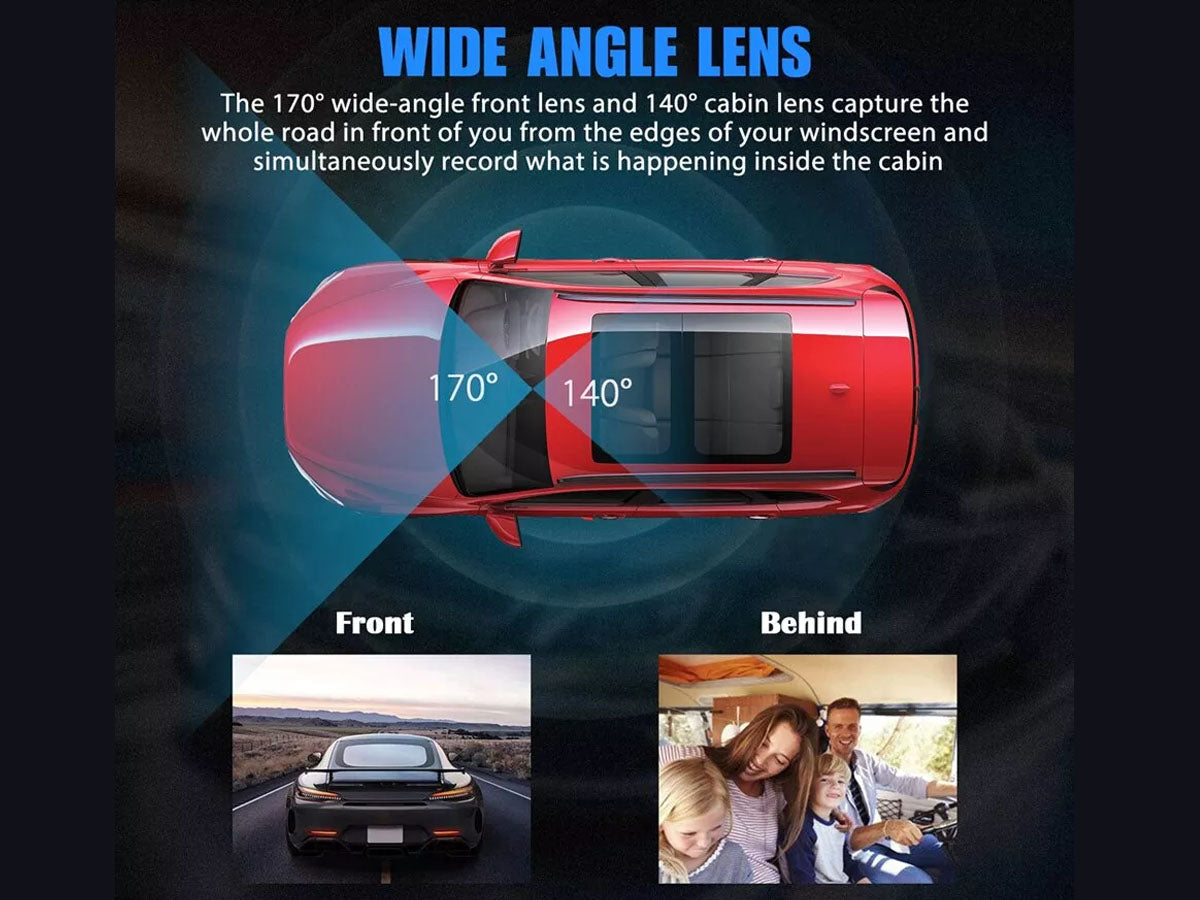 Offering almost every feature you could want from a Dash Camera, this is an ideal triple lens Dash Camera for drivers that will need evidence in the event some rowdy passengers do damage to their car. Our Dash Camera includes three lenses that record the road ahead, inside the cabin, and the rearview at 1080P.