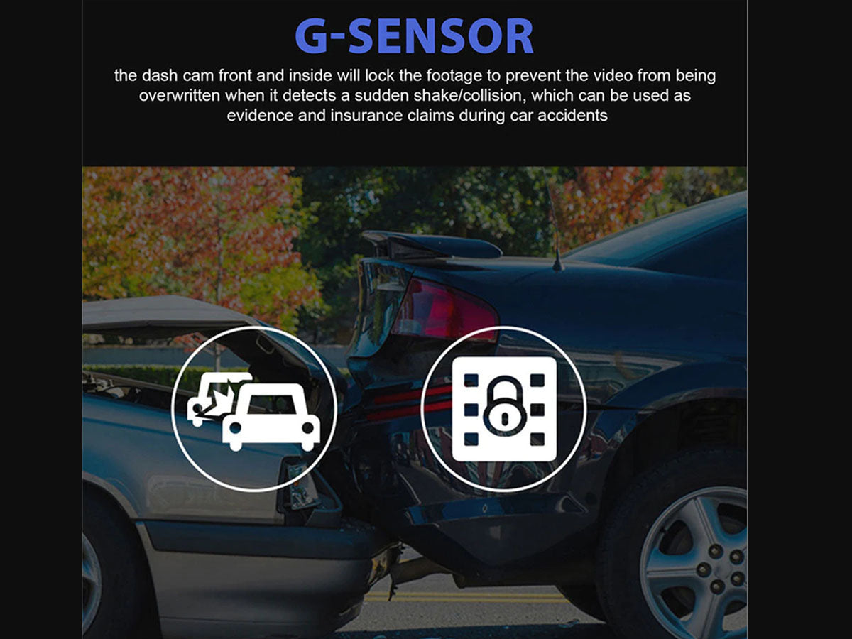 - G-Sensor, auto-locks the video in case of an accident