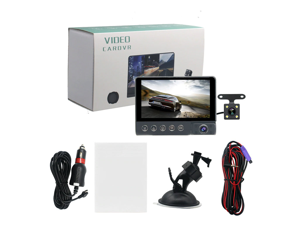 - Insert the car charger, and the machine will automatically start recording, when your car switches to the R position, change the reverse image automatically.