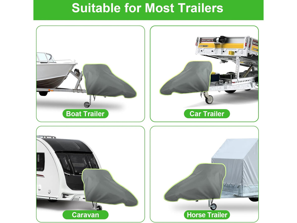 - Keeps trailer hitch, drawbar, and crank handle clean and dry