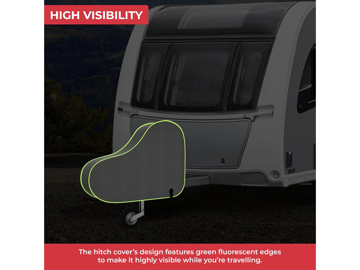 This Caravan Hitch Cover features reflective edges for enhanced night-time safety, an adjustable strap for a secure fit, and breathable materials to prevent moisture build-up. This Caravan Hitch Cover is Ideal for caravans, campers, and trailers, this cover ensures reliable performance and peace of mind year-round.