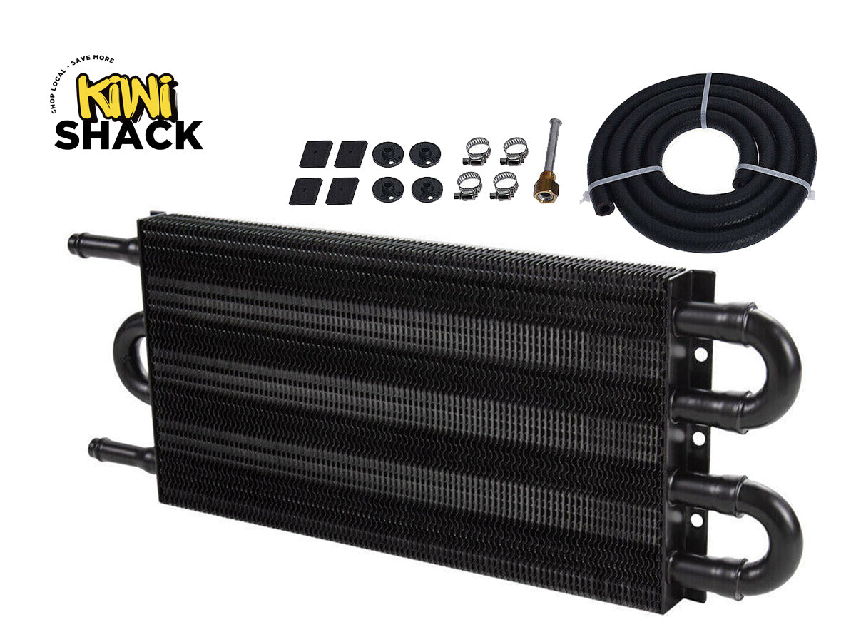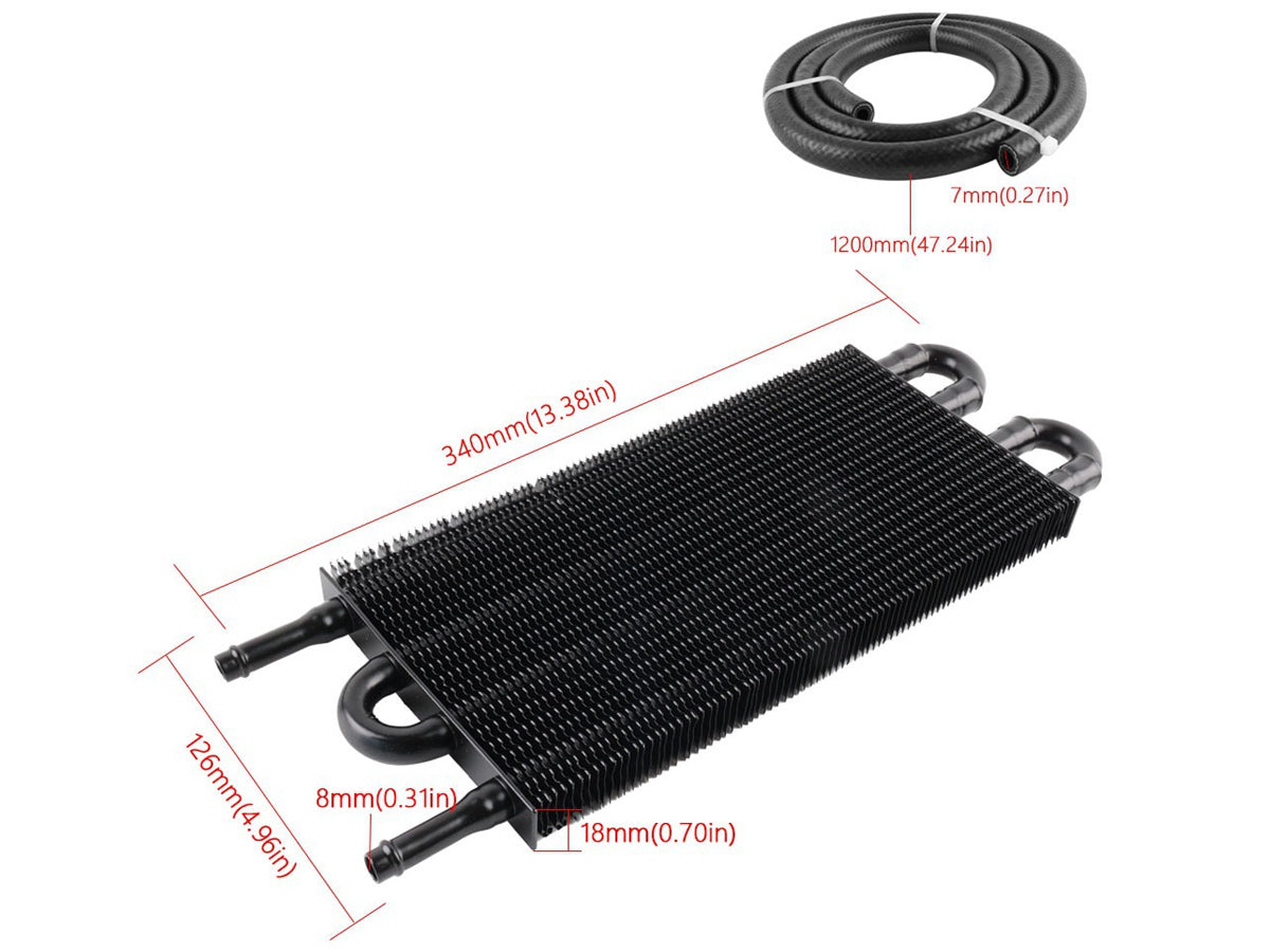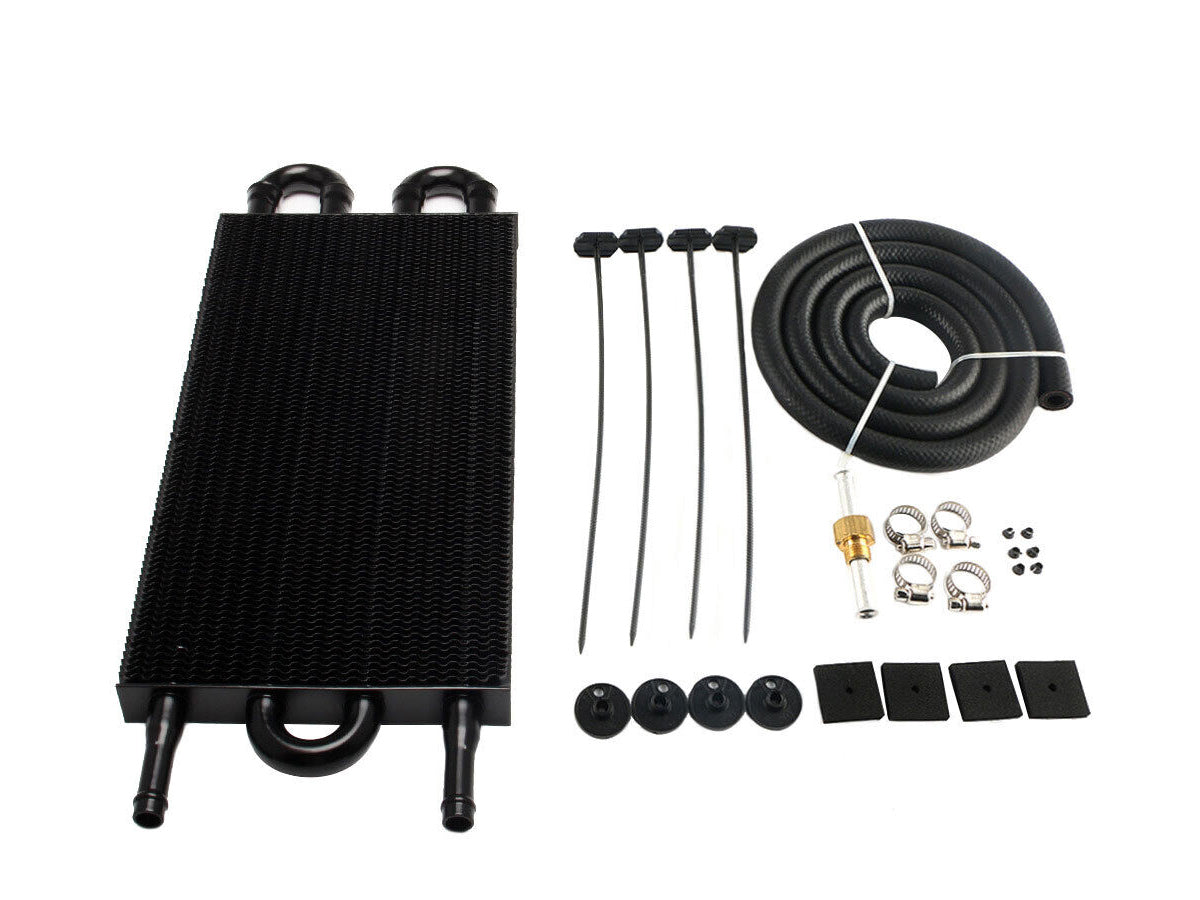 Upgrade your vehicle's cooling system with our Universal 4 Rows Engine Oil Cooler Kit. Crafted from high-quality T-6061 aluminium alloy, this Universal 4 Rows Oil Cooler Transmission Radiator ensures wear-resistant and corrosion-resistant performance. Effectively preventing transmission fluid leakage and overheating, it serves as a versatile solution to cool down engine oil, transmission, and rear differentials.