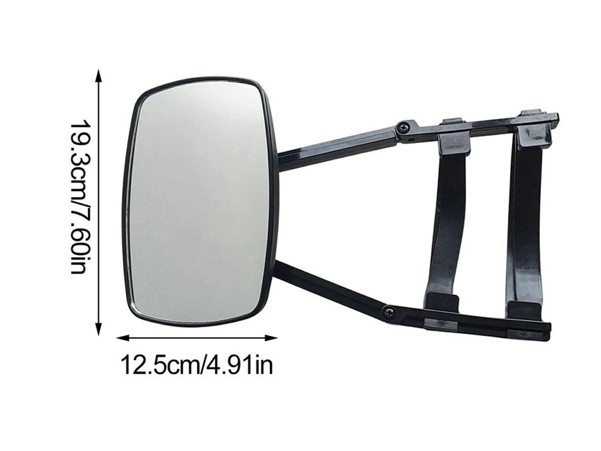 This Car RV towing mirror is a universal Clip-on style mirror, which is easy to install and fix tightly, and not easy to fall off. It attaches to the existing mirrors by positioning on the outer sides. This Trailer towing mirror adds the extra vision to tow wide loads without interfering with your existing mirror. The mirror size is about 193*125mm (7.60 x 4.92in), which increases the viewing area, ensures road safety greatly, and makes the driving safer.