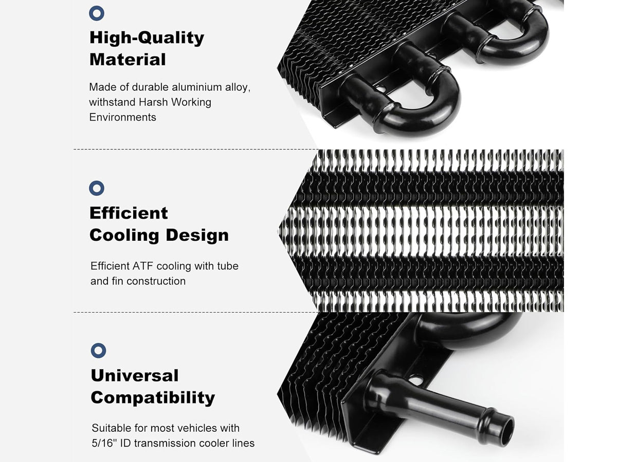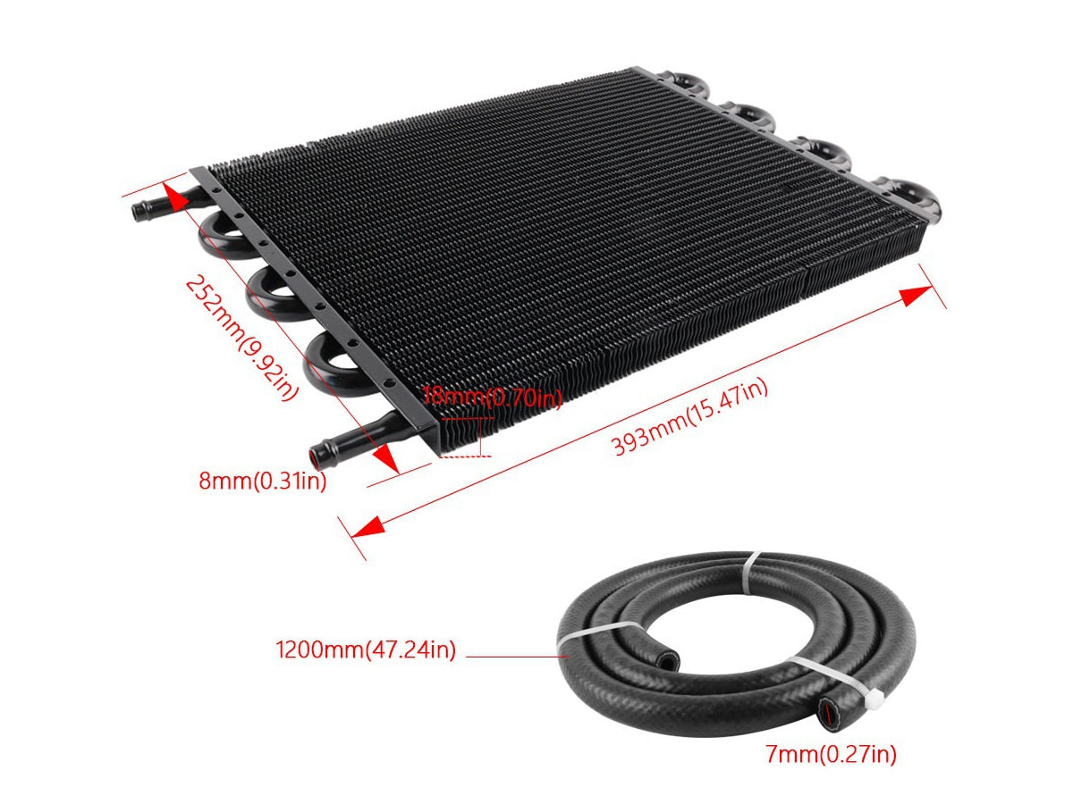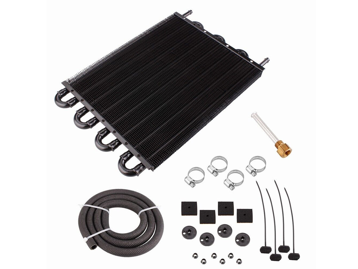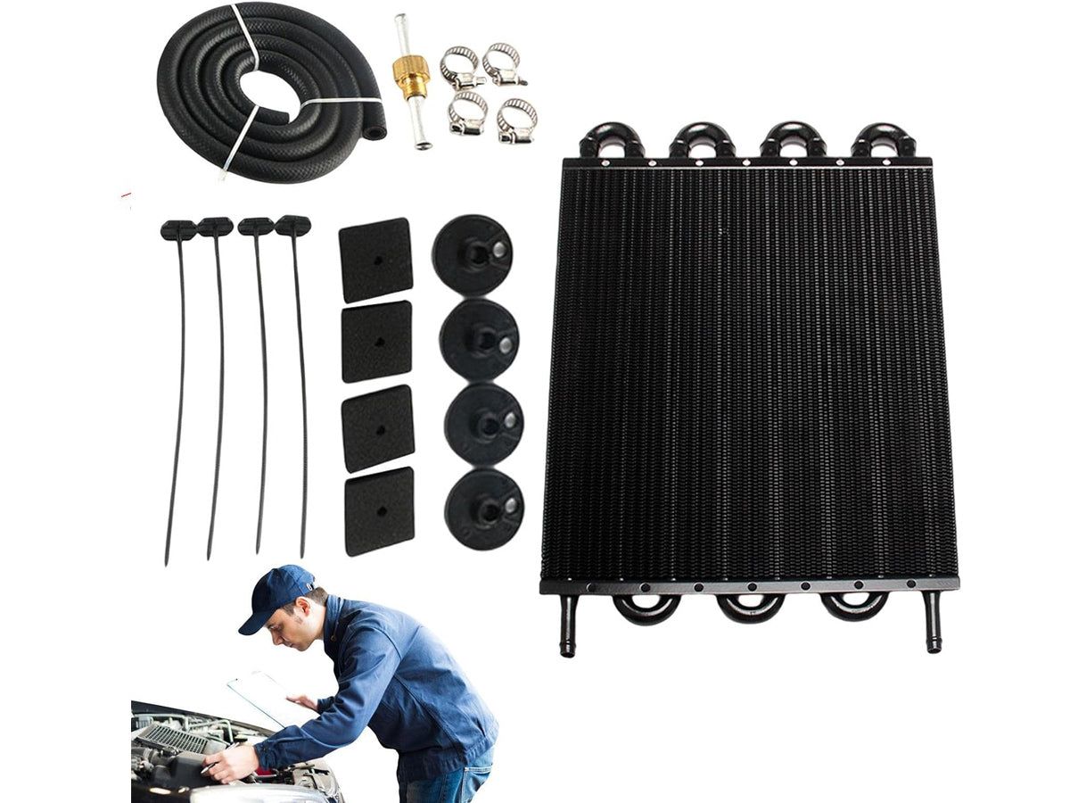 Upgrade your vehicle's cooling system with our Universal 8 Rows Transmission Oil Cooler Radiator Converter Kit. Crafted from high-quality T-6061 aluminum alloy, this Engine Oil Cooler Kit ensures wear-resistant and corrosion-resistant performance. Effectively preventing transmission fluid leakage and overheating, it serves as a versatile solution to cool down engine oil, transmission, and rear differentials.
