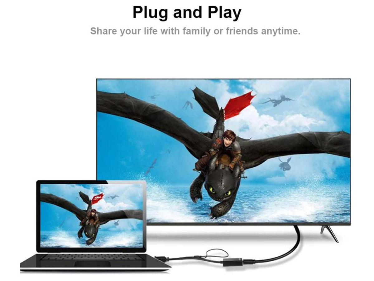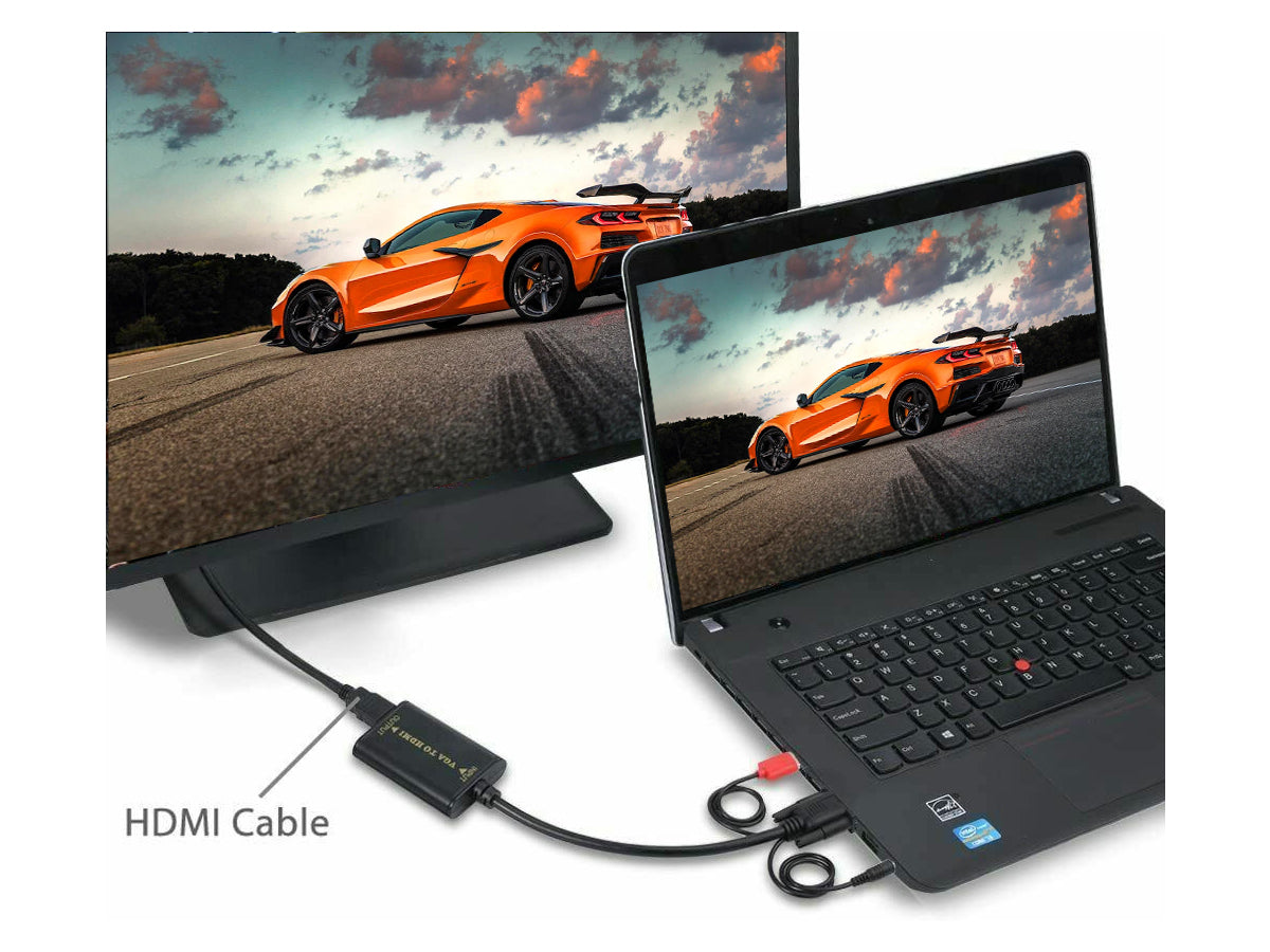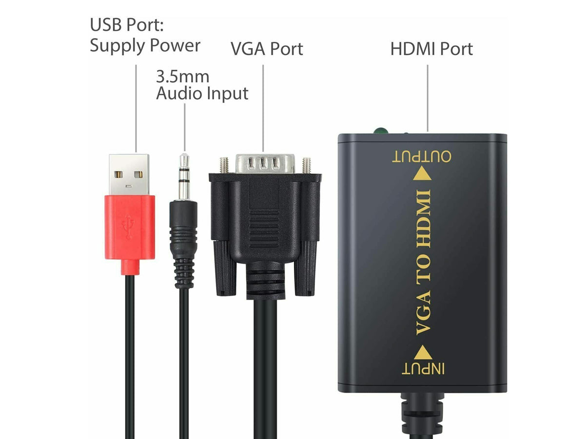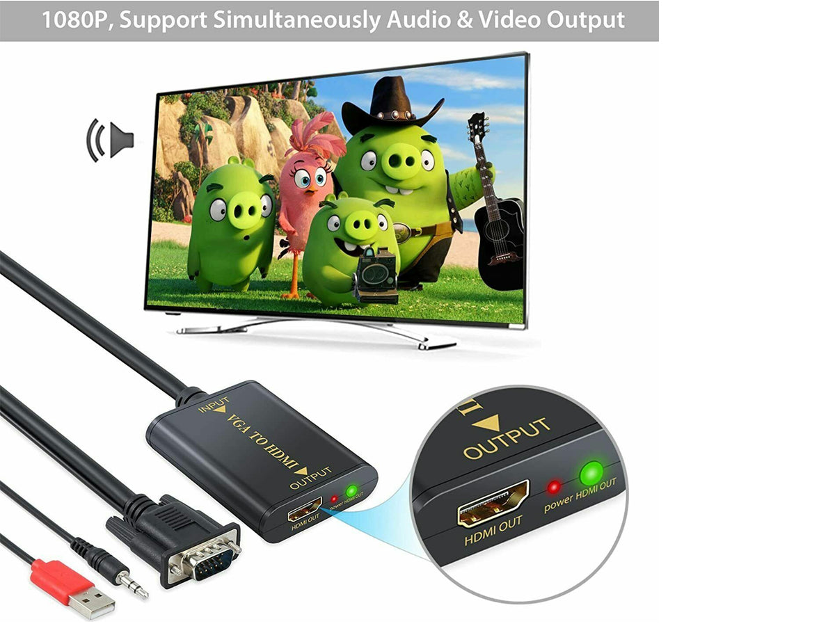 - Convert VGA video and 2CH USB audio to HDMI and view on HDTV / Monitor