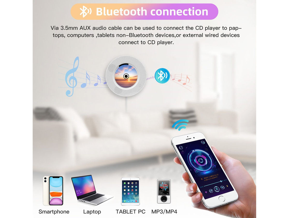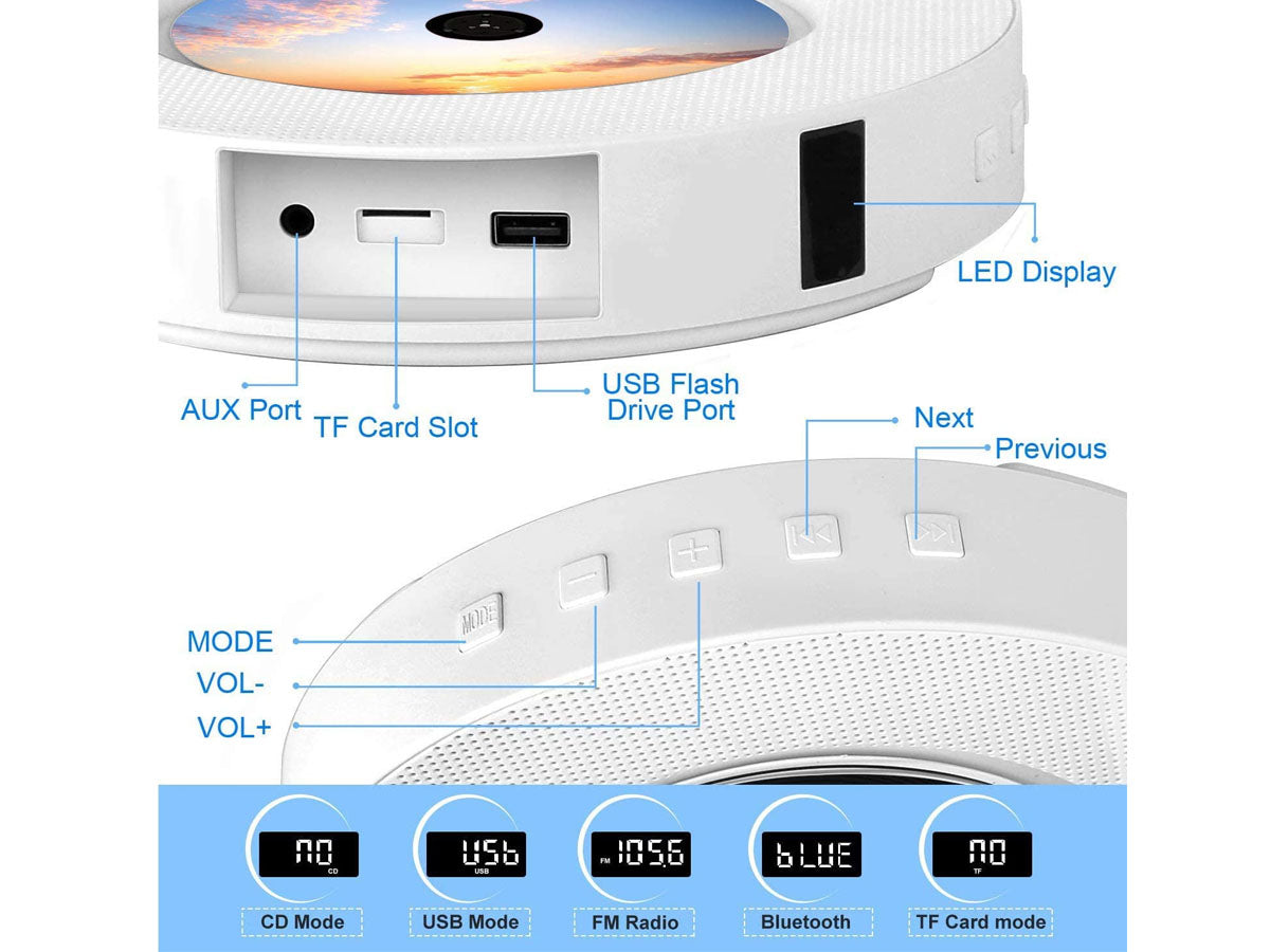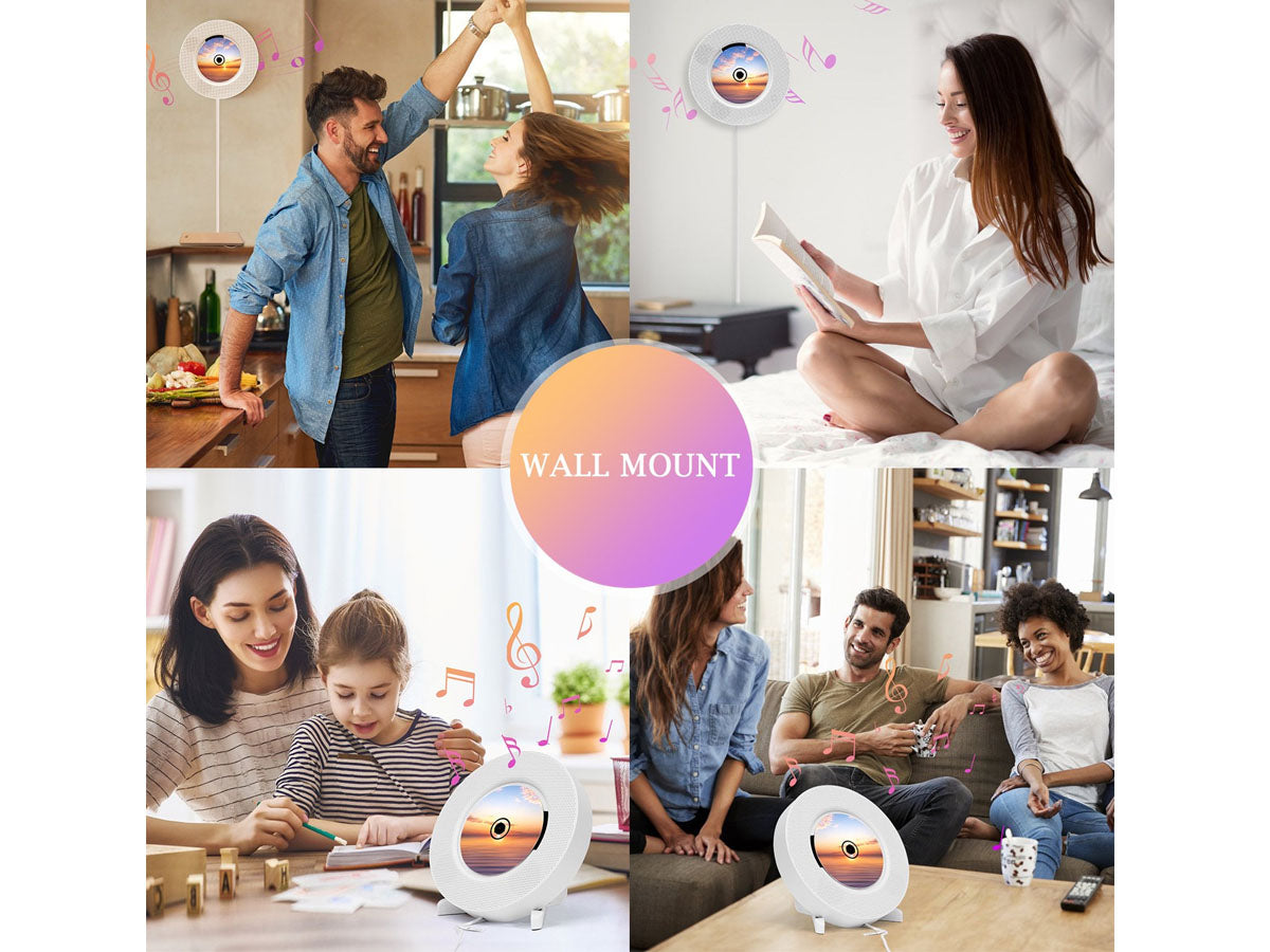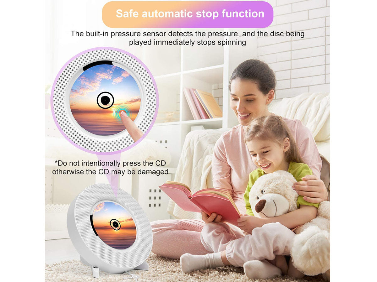 This CD player is designed with minimalism, one plays all multiple functions of the remote control. The unique wall-mountable design makes this CD player an elegant decoration for your house. It also comes with a desk stand for those who don't like to mount it on the wall. It's a creative gift for your parents, children, or friends on their birthdays, anniversary, etc.